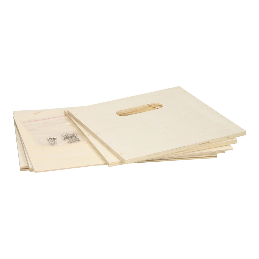 Fijne Houten Rechthoekige Opbergkist om spulletjes in op te bergen. De opbergkist wordt ongemonteerd geleverd. Inclusief 12 schroefjes.