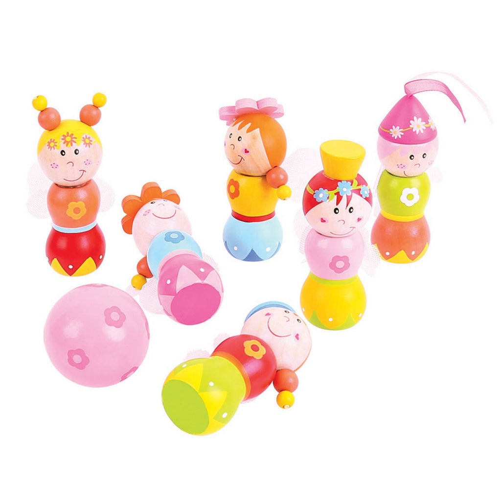 Wauw, wat zien ze er kleurrijk en blij uit: de 6 prinsesjes van de Houten Bowlingset Prinsessen! Wat denk jij, lachen ze nog steeds als je ze omver knalt? De enige manier om daar achter te komen, is het uitproberen met de bijgeleverde roze bal van de Houten Bowlingset Prinsessen.