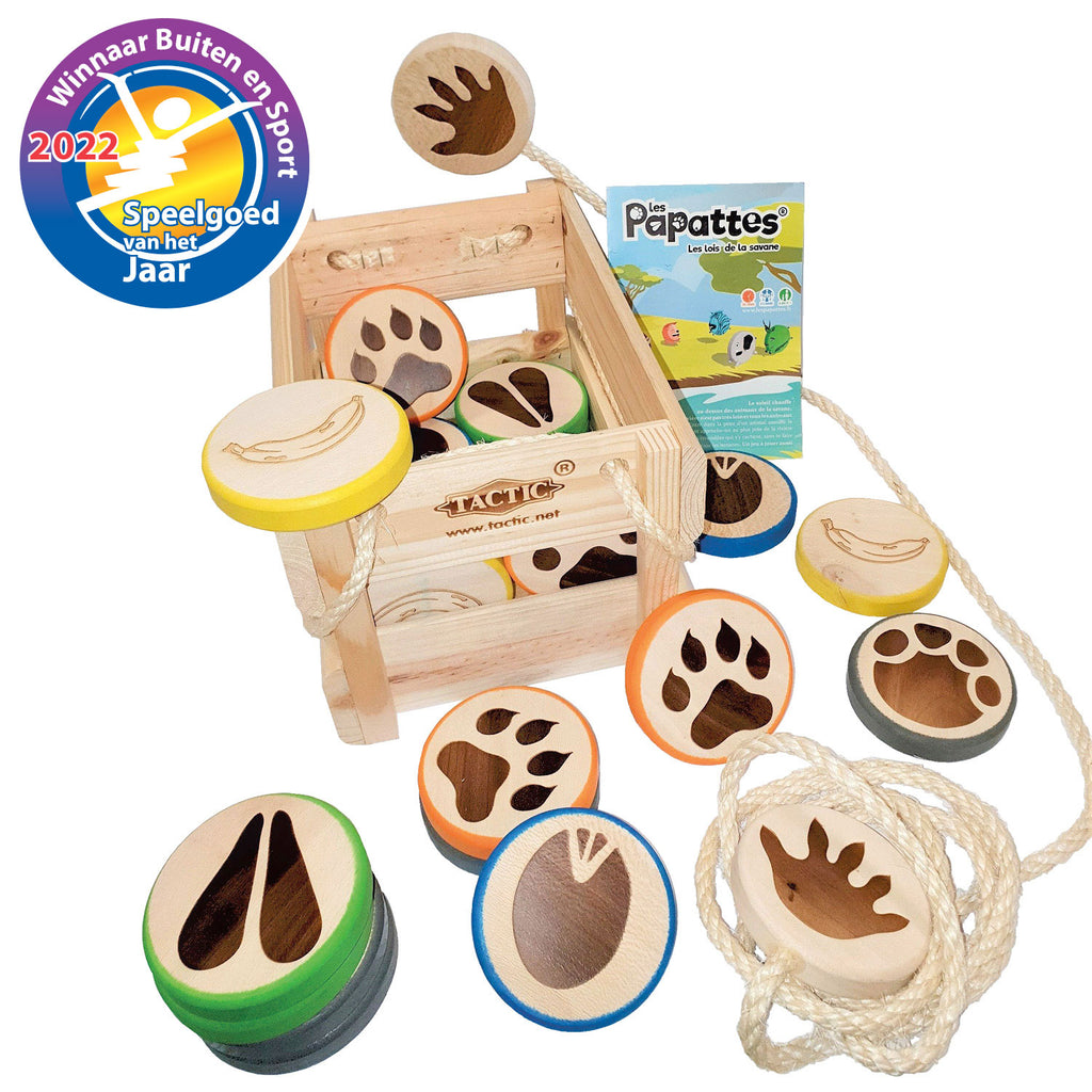 Leuk buitenspel van hout. De zon brandt op de dieren op de savanne, de rivier is niet ver weg en alle dieren hebben dorst... Kruip in de huid van een dorstig dier dat zin heeft in een spelletje en kom zo dicht mogelijk bij de rivier zonder te worden opgegeten door de krokodillen die zich daar verstoppen.