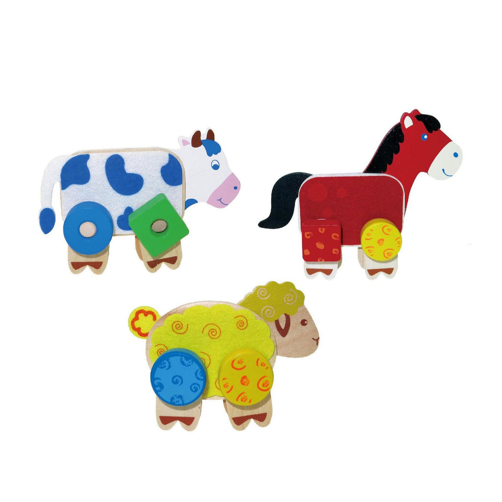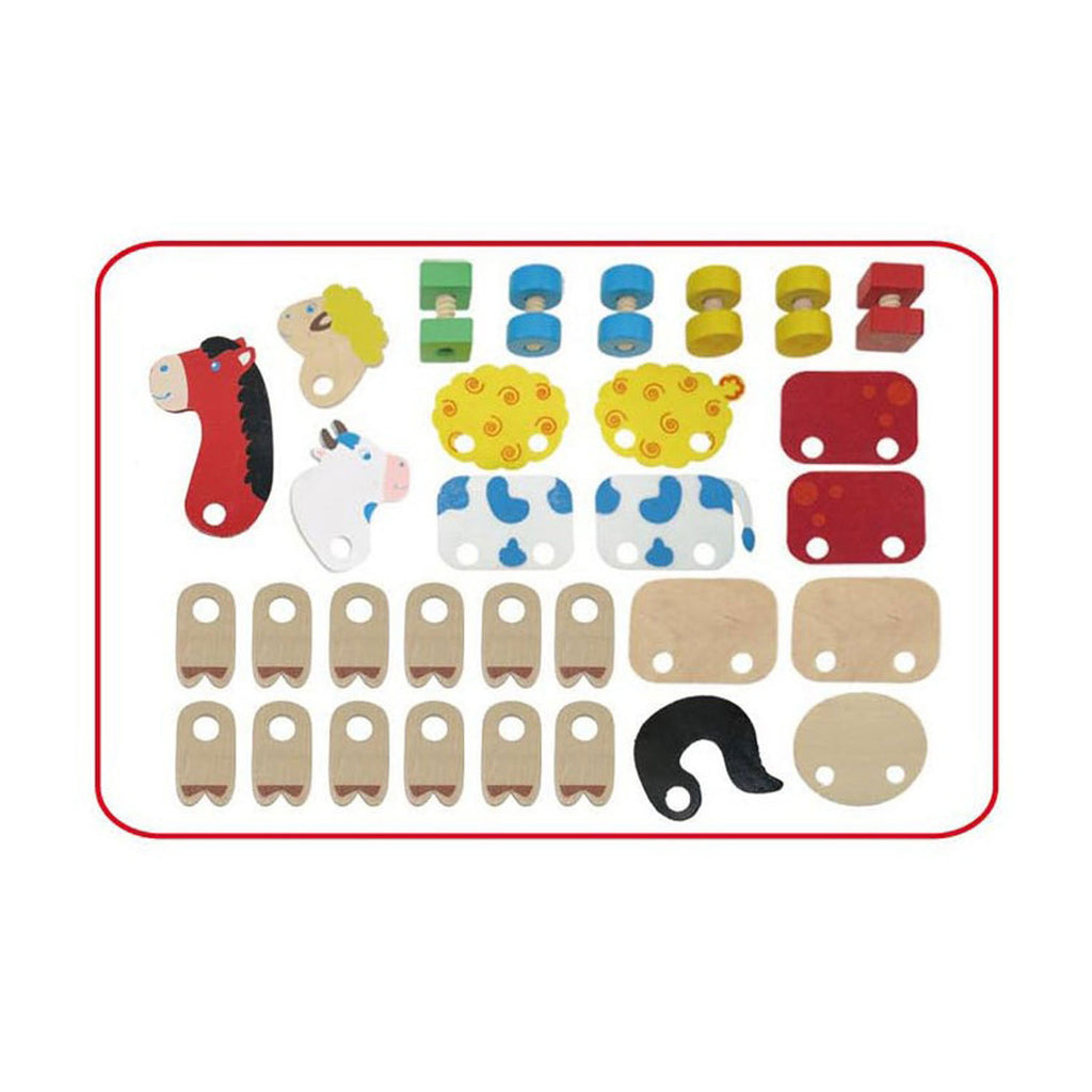De leukste boerderijfiguren maak je met deze 37-delige Boerderij Constructieset. Maak boerderijdieren, een koe, een paard en een schaap, in verschillende soorten kleuren en vormen. De onderdelen van deze set zijn gemaakt van stevig hout, er is geen gereedschap nodig om de onderdelen in elkaar te zetten. Spelen met de Boerderij Constructieset stimuleert de ontwikkeling van het creatief vermogen en de fijne motoriek.