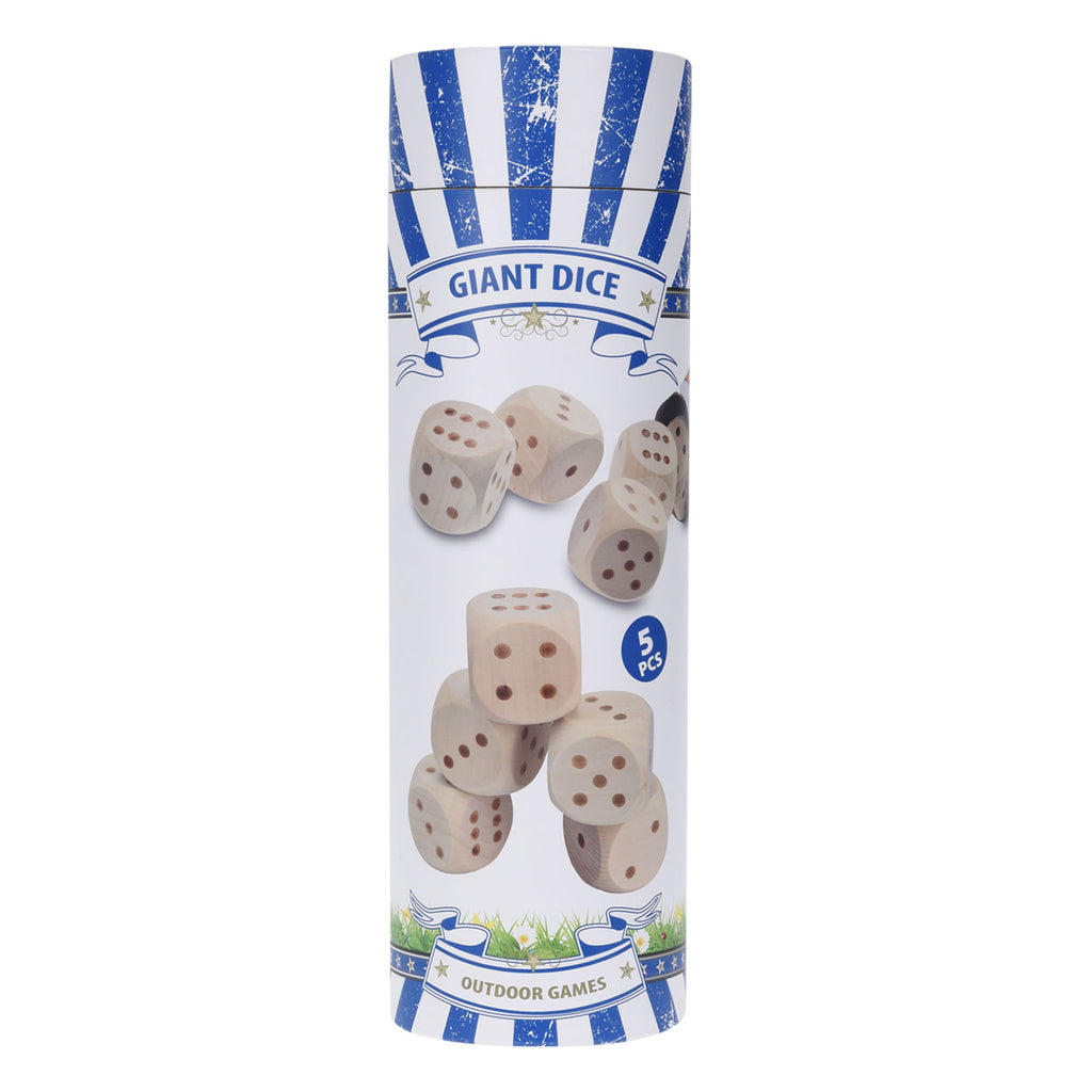 Beleef uren speelplezier met dit dobbelspel van 100% FSC hout. De set bestaat uit 5 grote dobbelstenen. De dobbelstenen zijn 5,5 x 5,5 x 5,5 cm.