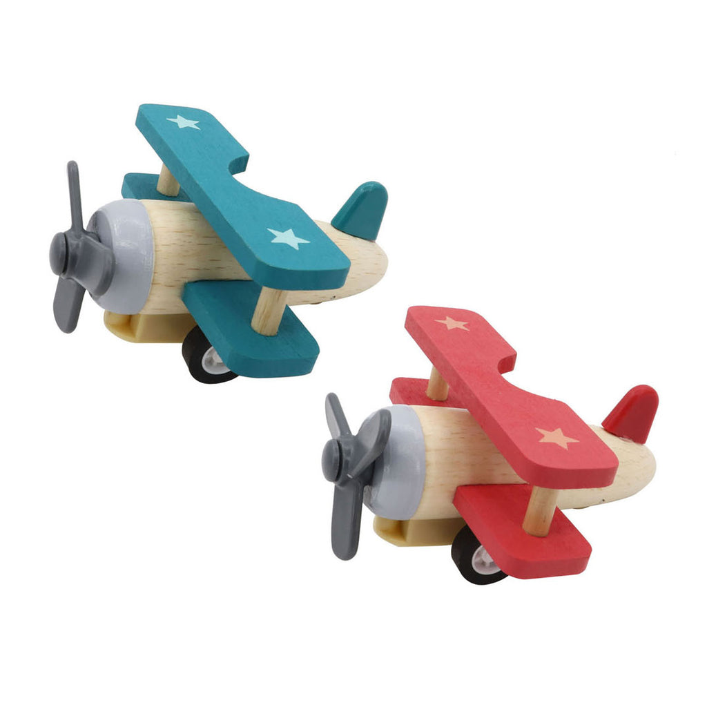 Houten dubbeldekker vliegtuig met een propeller die echt kan draaien!