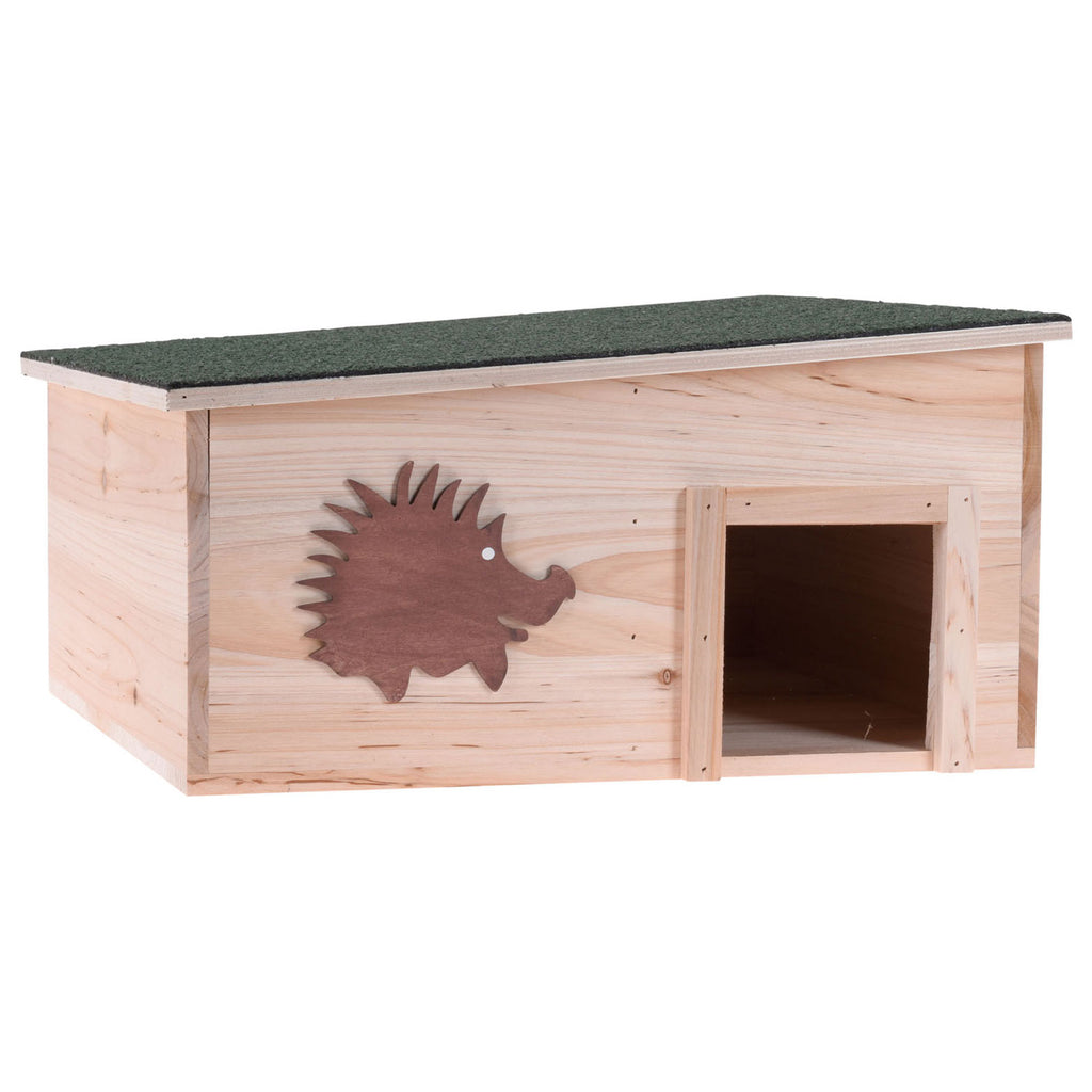 Dit houten egelhuis heeft twee kamers en is waterdicht. Het dak is verwijderbaar. Het egelhuis is gemaakt van geglazuurd naaldhout en is daarmee duurzaam, weerbestendig en diervriendelijk.