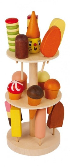 IJs op een stokje of in een hoorntje - deze ijskraam biedt in totaal 15 verschillende kleurrijk gedecoreerde soorten ijs. Deze ijsset moedigt kinderen aan tot rollenspel en is een perfecte aanvulling op de speelkeuken en speelwinkel van de kinderen. Iedereen wil een bolletje!