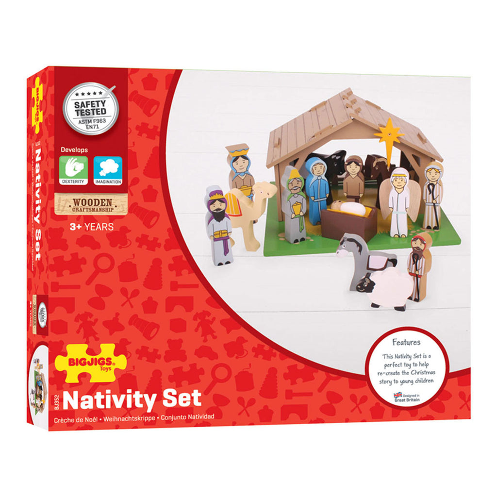 Gemaakt van hoogwaardige, verantwoorde materialen. Voldoet aan de huidige Europese veiligheidsnormen. Bestaat uit 16 speelstukken. 16-delige kerststal inclusief baby Jezus, Maria en Jozef, 3 wijze mannen, 2 herders en nog veel meer.