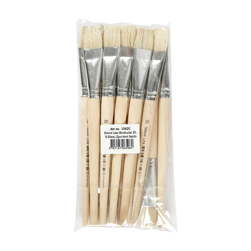 Platte varkensharen kwasten met korte, gelakte houten steel - ideaal voor gebruik met dikkere verf. Maat penseel: 20, breedte: 20 mm.