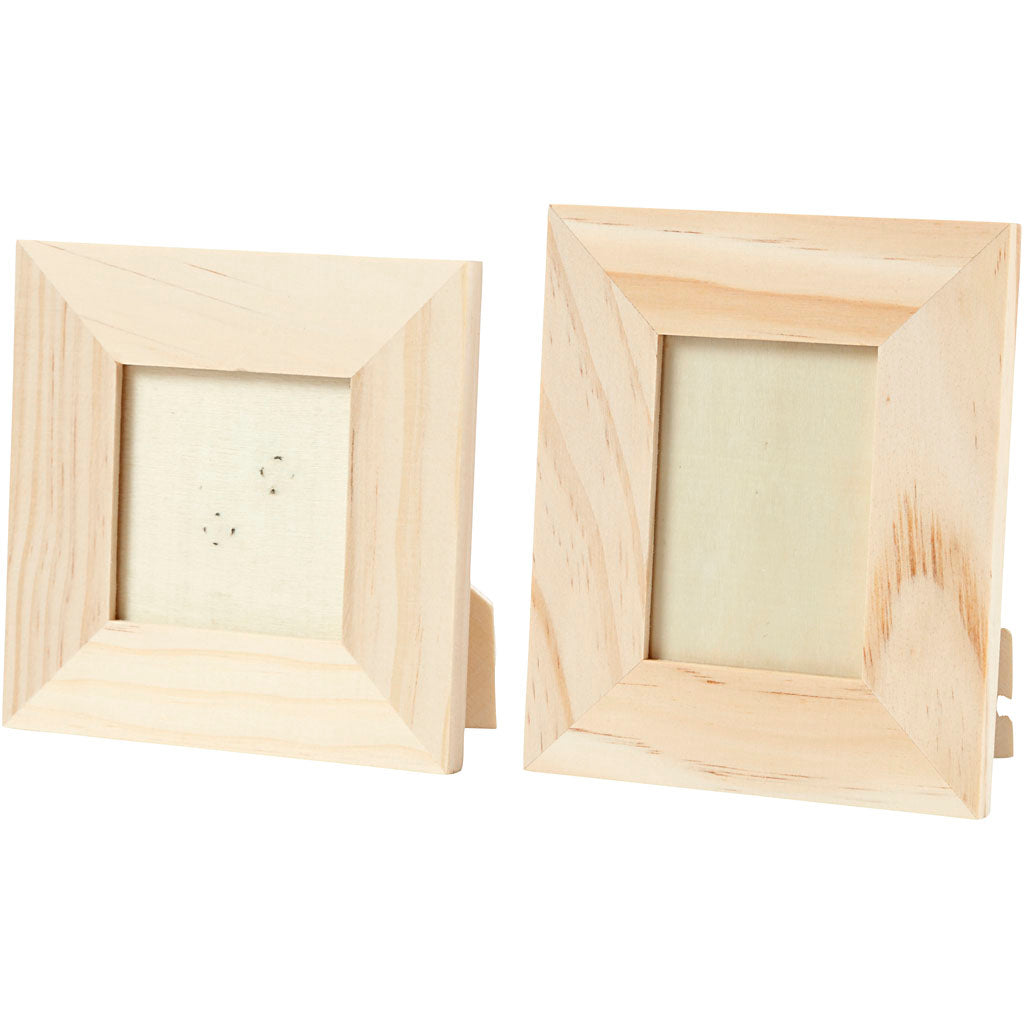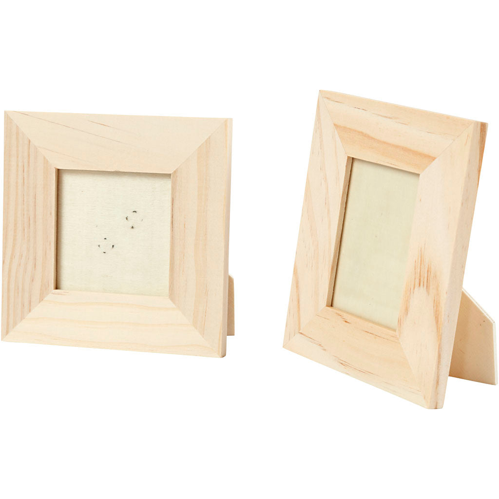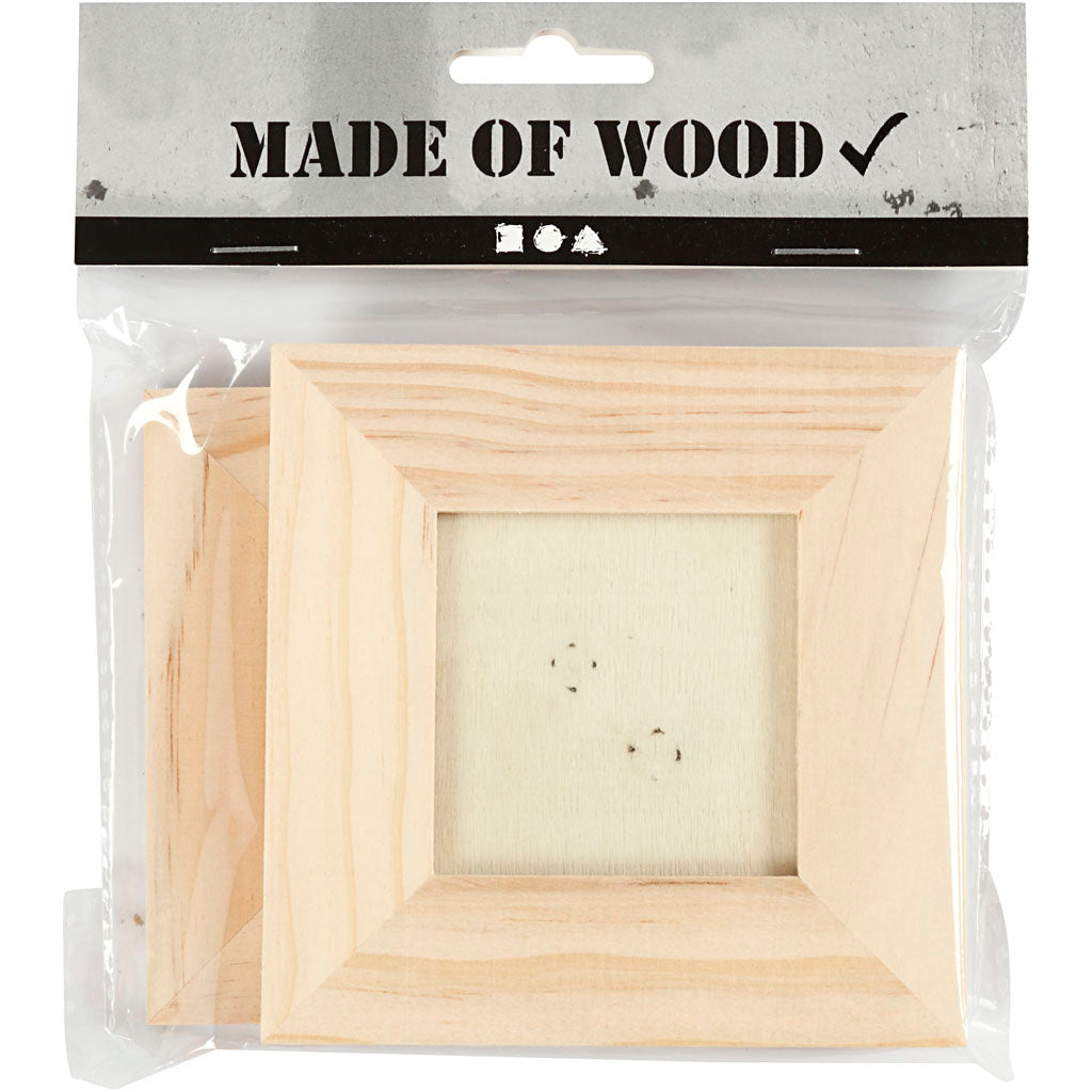 Set van 2 houten lijsten, afmeting 10x10 en 9x11 cm.