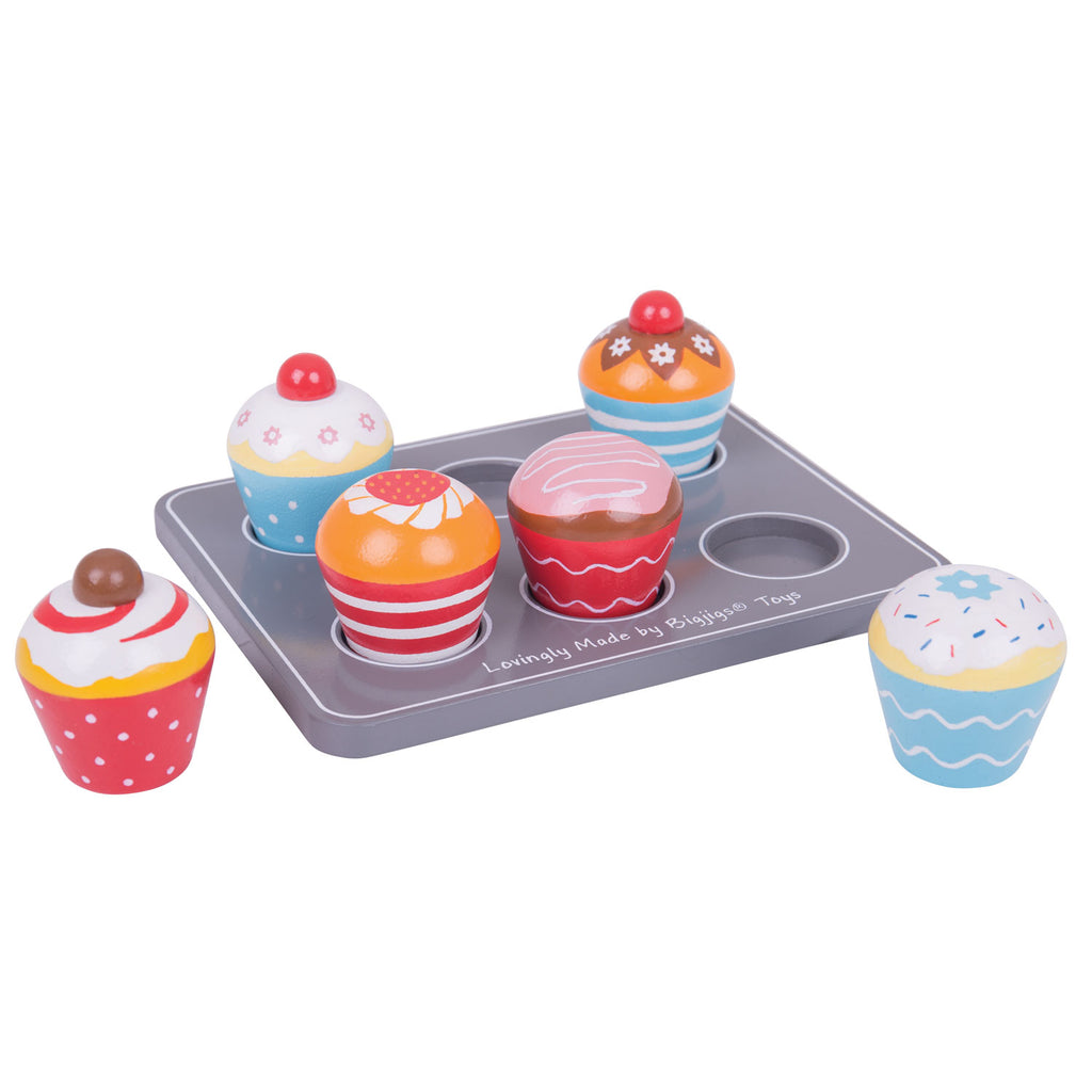Toon je kookkunsten met deze houten muffinset van BigJigs. Plaats de prachtig gedecoreerde muffins van hout op de bakplaat en serveer ze aan je knuffels en vrienden. Jammie, smullen zeg! Spelen met de houten muffinset stimuleert de ontwikkeling van fantasie, sociale vaardigheden en handigheid.
