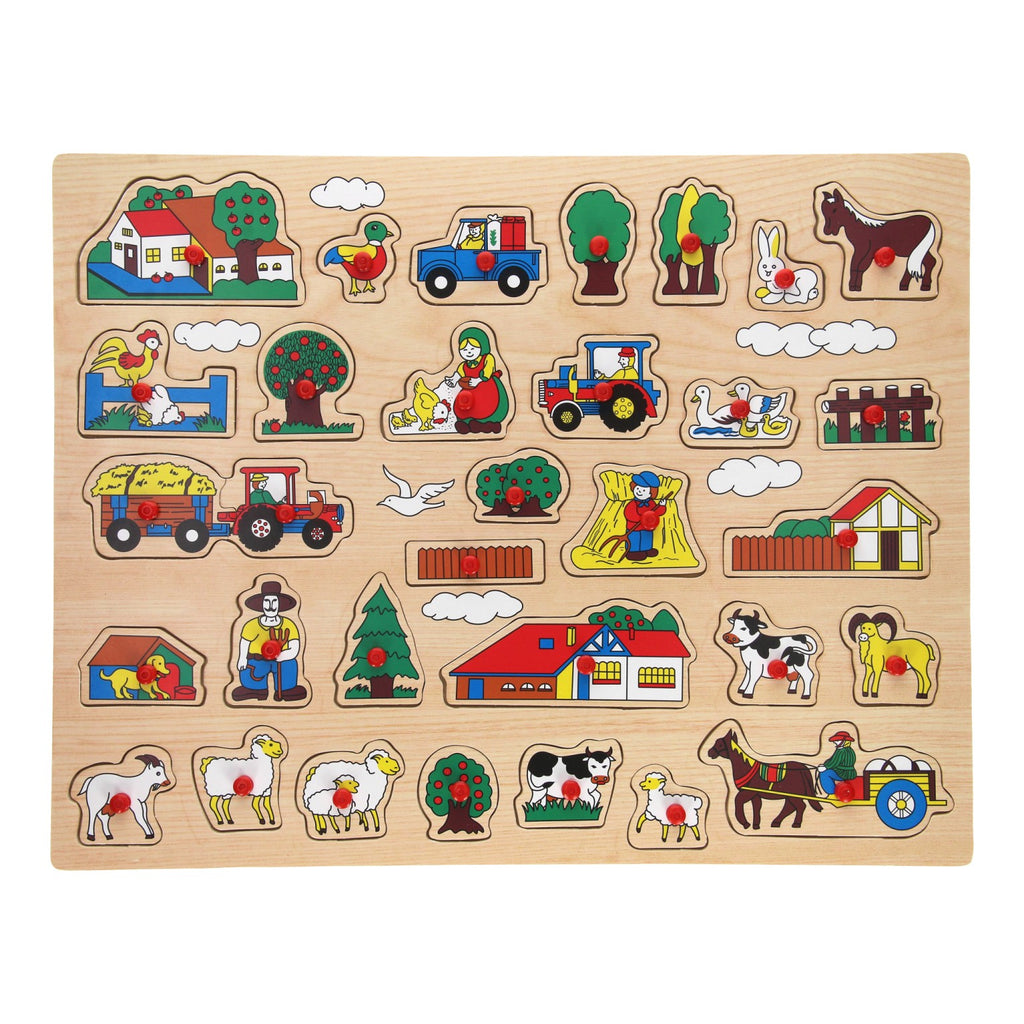 Deze vrolijk gekleurde Houten Noppenpuzzel XL - Voertuigen heeft 27 stukjes. Voor een dreumes is het een prachtige uitdaging om de houten stukjes op de juiste plek te krijgen. Bovendien stimuleert de houten noppenpuzzel XL voertuigen de fijne motoriek en de oog-hand coördinatie van het spelende kind. Geschikt voor kinderen vanaf 10 maanden.