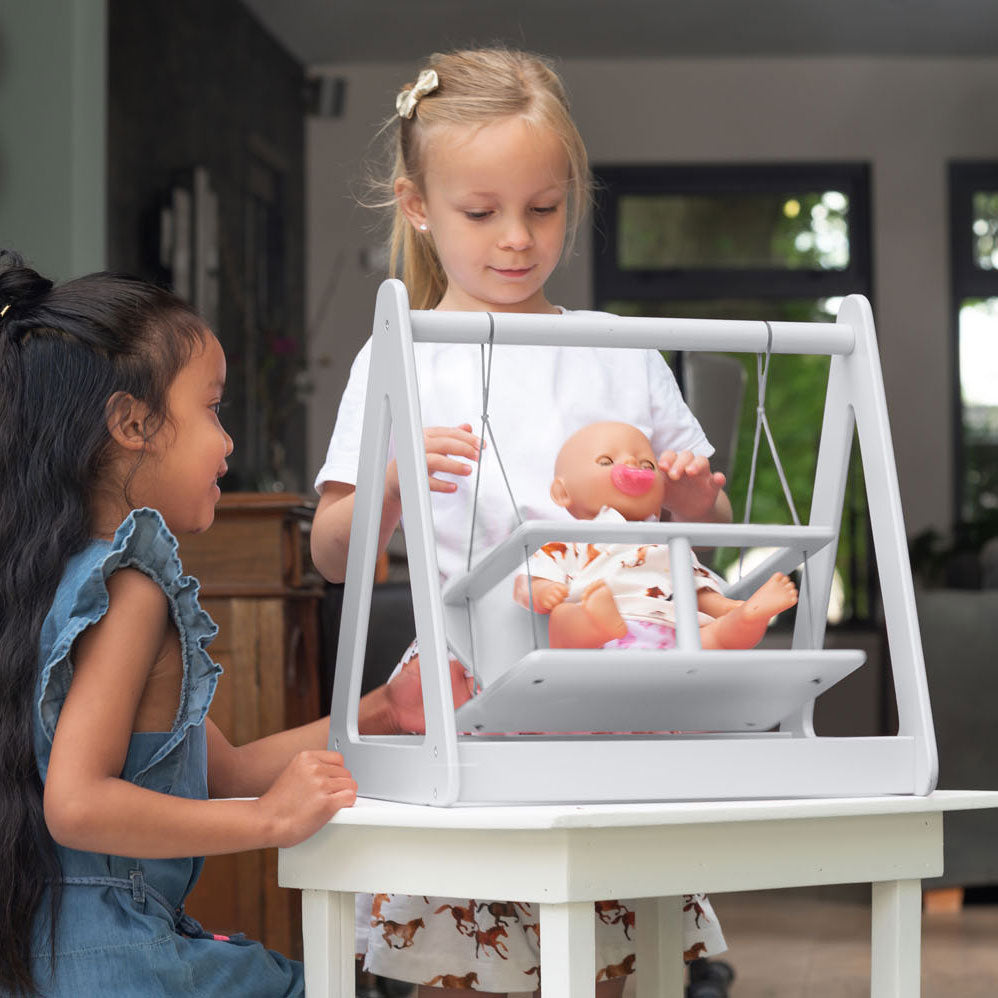 Houten Poppen Schommelstoel. De schommelstoel is 40 bij 30 centimeter.