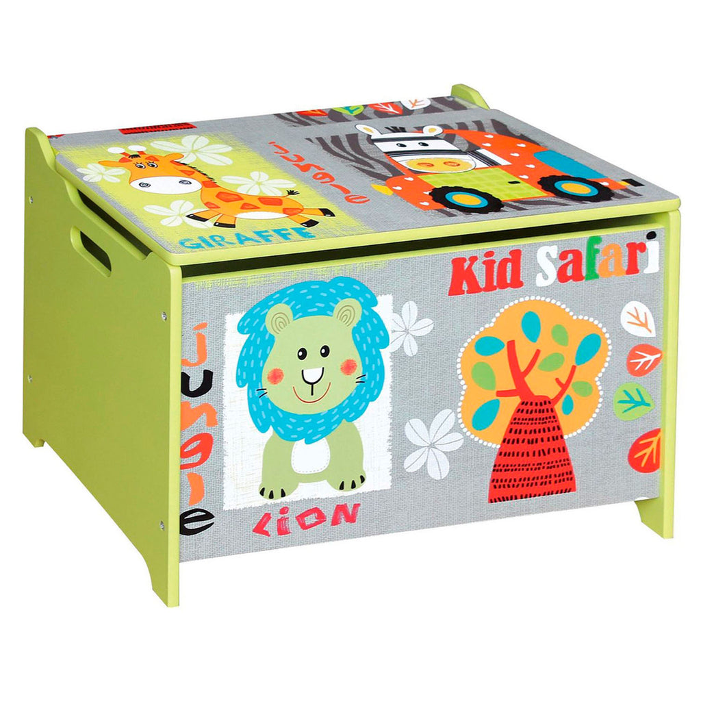 Deze Houten Speelgoedbank Safari is ideaal voor het opbergen van speelgoed. De groene speelgoedbank is bedrukt met met wilde dieren en andere leuke patronen. Het bankje is ook geschikt om op te zitten of om op te spelen. De opbergbank heeft een scharnier met veer zodat de klep open kan blijven staan. Aan de voorkant is speciaal een inkeping gemaakt zodat kleine vingertjes niet tussen de klep komen. Dankzij de inkepingen aan de zijkant kan de speelgoedbank ook eenvoudig verplaatst worden.