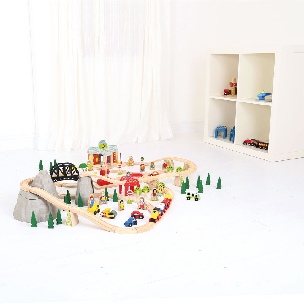 Treinset Alpen, 112dlg. Sluit aan op andere houten treinsystemen.