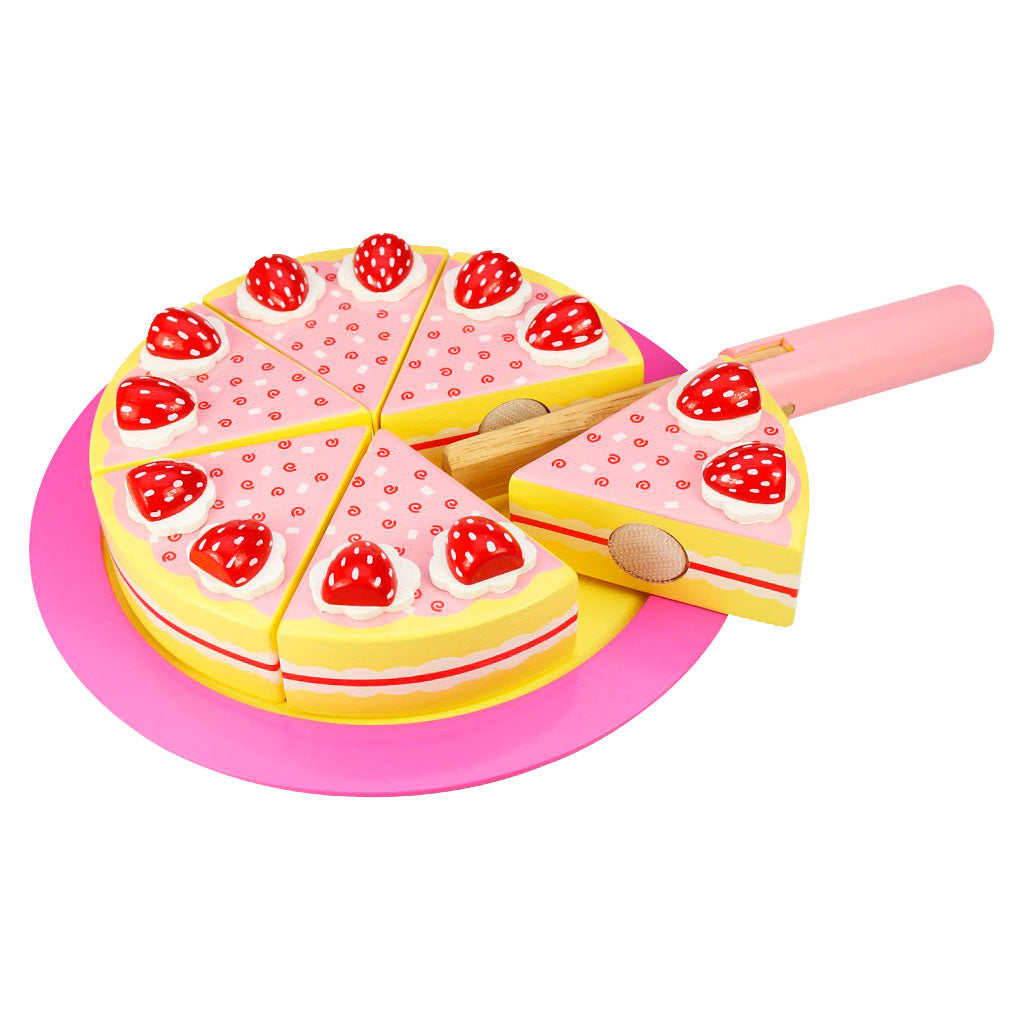 Een heerlijke aardbeientaart is natuurlijk onmisbaar op een verjaardagsfeest. De 6 houten punten taart zitten met klittenband aan elkaar. Snij de taart met het mes in stukjes en serveer hem aan je gasten!