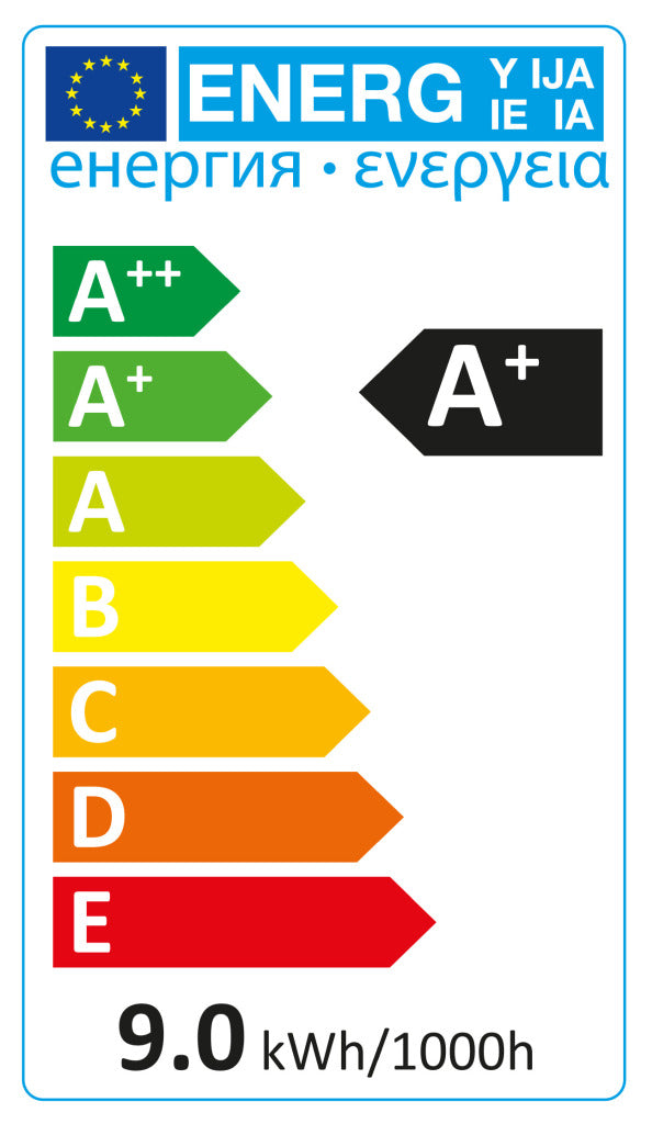 A60-vormige LED-lamp met E27-fitting, 806 lumen en een zeer laag energieverbruik van 9 watt, ter vervanging van traditionele 60-watt gloeilampen en voor directe energiebesparing.