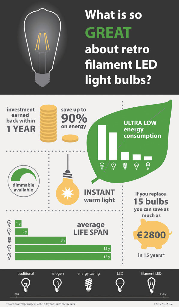 Creëer een warme en aantrekkelijke sfeer in uw woning en vervang traditionele gloeilampen met deze filament LED-lamp. De lamp is ook nog extreem energiezuinig, wat een van de snelste manieren is om op uw energierekening te besparen.