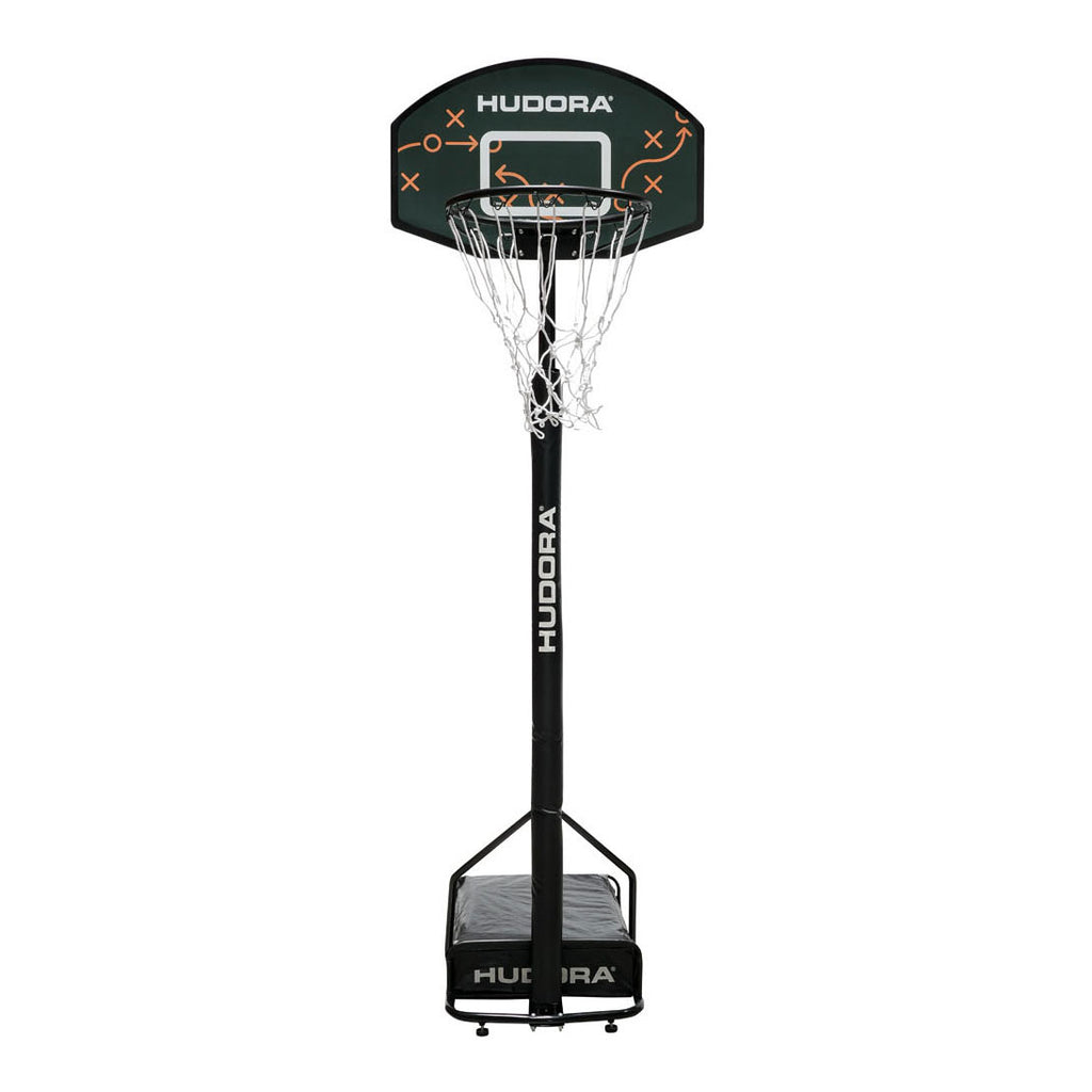 Een balletje gooien, waar je maar wilt? Dat kan nu! Met deze basketbalstandaard kunnen briljante prestaties worden geleverd, zowel op parketvloeren binnenshuis als in de tuin of voor de garage. Omdat het weerbestendig materiaal ervoor zorgt dat je in elke omgeving kunt dribbelen. En omdat hij in hoogte verstelbaar is, kunnen jong en oud met de basketbalstandaard hun hart ophalen. Natuurlijk is stevig dunken ook mogelijk - dankzij de stabiele basis en de bak die kan worden gevuld met zand of water. Dit zorgt voor het nodige tegengewicht en dus voor een veilige stand. En zelfs als het er ruig aan toe gaat: de framebekleding beschermt schenen & co betrouwbaar tegen kneuzingen.