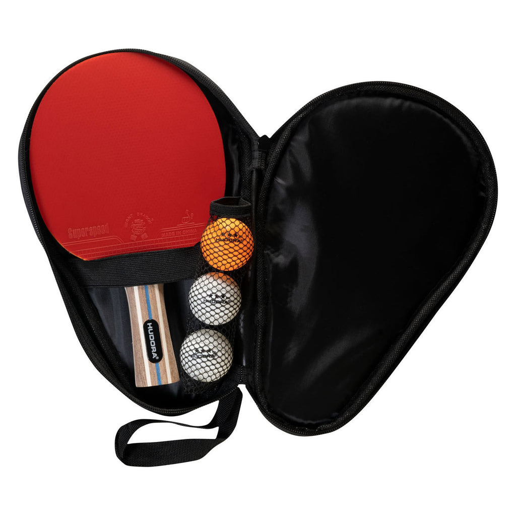 Tafeltennisset van Hudora met 1 Attack batje (6,5 mm dik) en 3 pingpongballen, hoge kwaliteit.