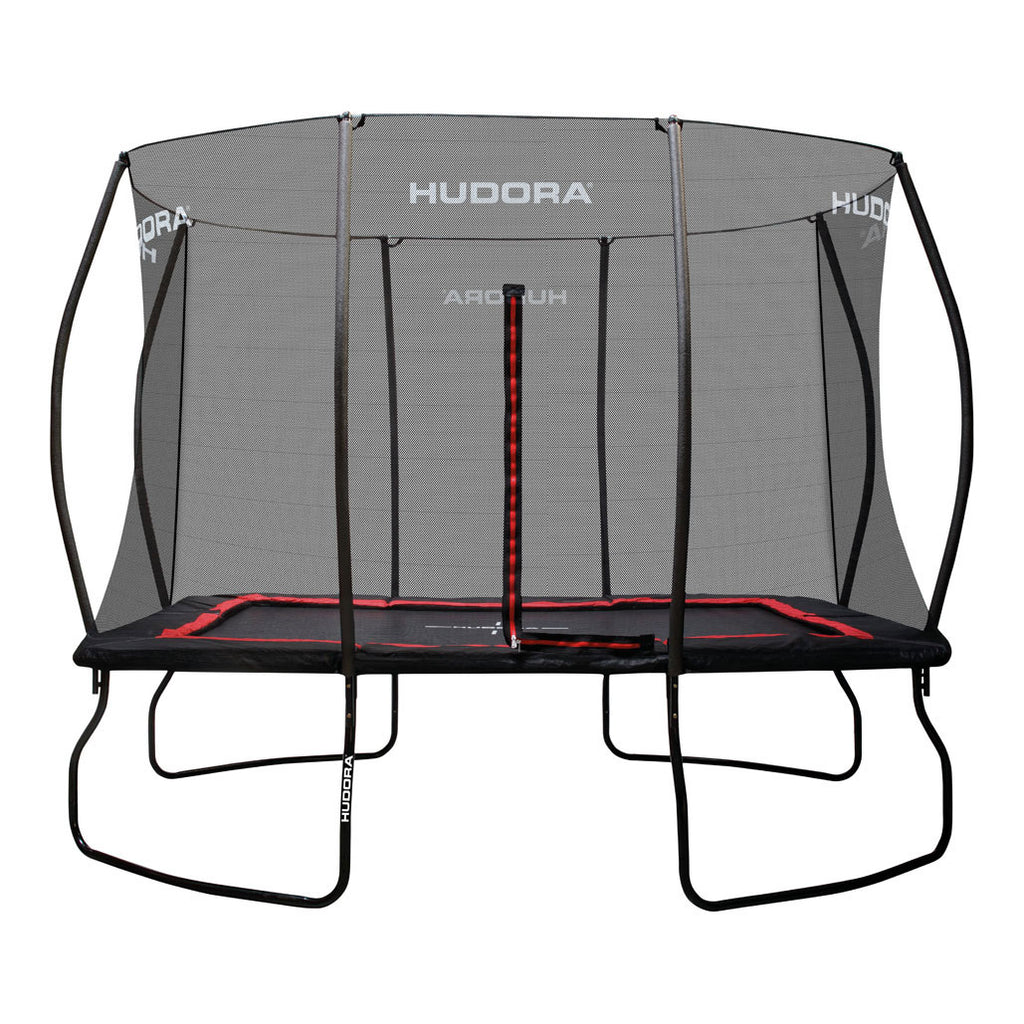 HUDORA Trampoline 4-Square. Bijna zoals de profs: rechthoekige trampolines zijn een standaard in wedstrijdsporten omdat ze langs een lijn dezelfde springkwaliteit bieden. Op de 4square-trampoline kunnen kinderen en jongeren voor het eerst kennismaken met dit springgevoel - gekatapulteerd door de prestatievering met 76 dubbelconische stalen veren (64 voor de kleine versie) en twaalf Rapid Bounds (zes voor de kleine versie). Het high-impact frame met uitbestede veerbevestigingen op de centrale framebuizen zorgt voor een ideale krachtopname en beschermt de hoofdstaven. De brede voeten, het buitennet met topring en de tweekleurige randafdekking beloven veilig, GS-gecertificeerd springplezier voor gebruikers met een gewicht tot 120 kg.