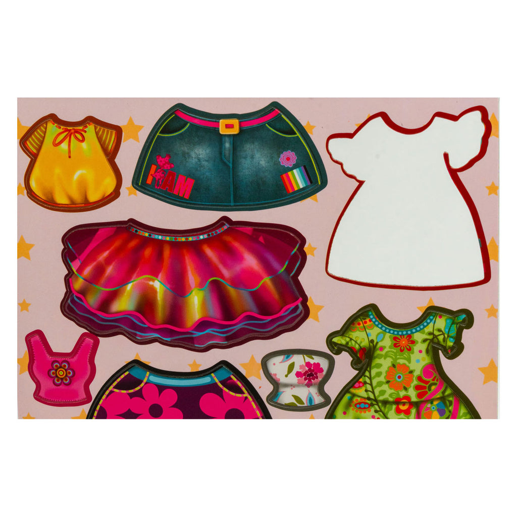 De kledingstukken en accessoires kunnen eenvoudig uit het bord gedrukt worden, zodat je er ermee kan gaan spelen.