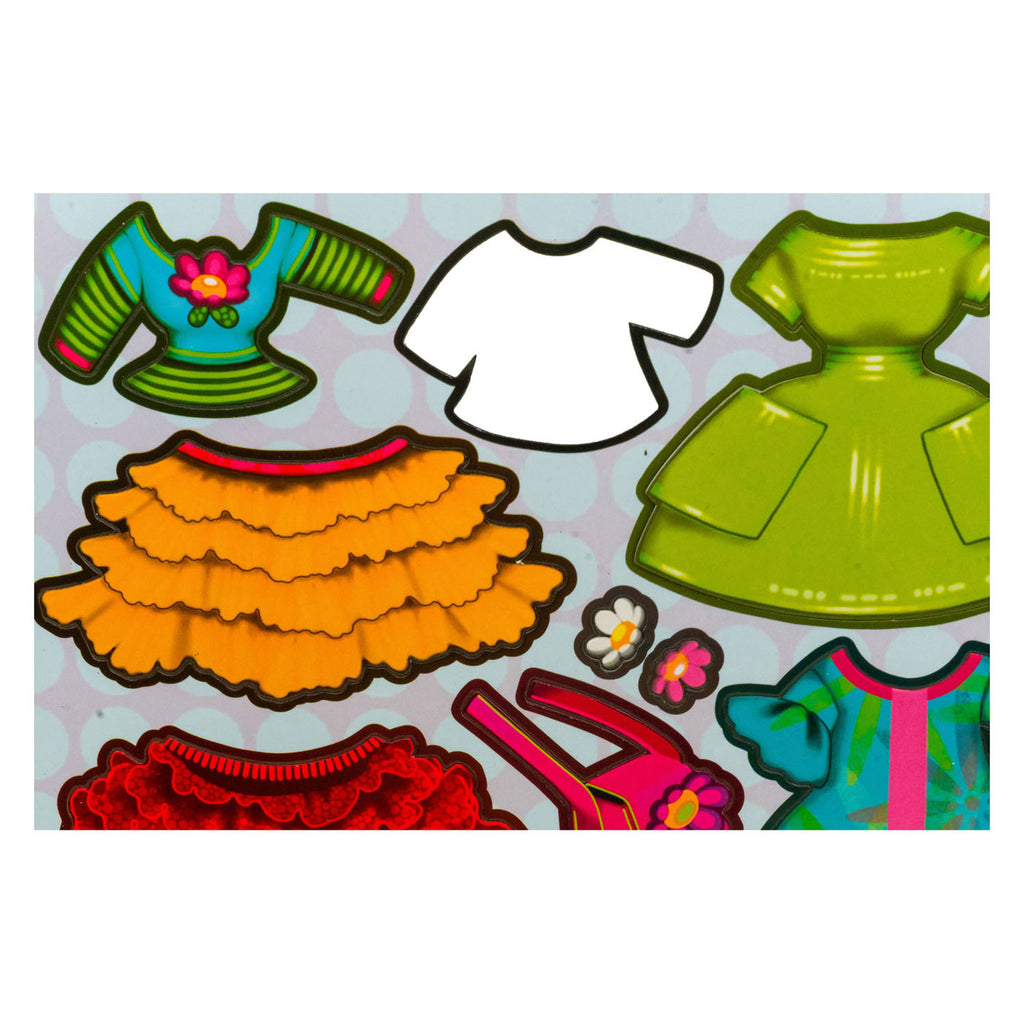 De kledingstukken en accessoires kunnen eenvoudig uit het bord gedrukt worden, zodat je er ermee kan gaan spelen.