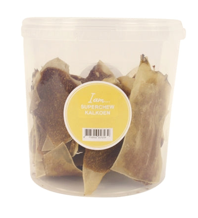 I Am Superchew Kalkoen van 1,5 kg is een heerlijke, natuurlijke kauwsnack voor jouw hond die verveling tegengaat en de tanden helpt verzorgen. Deze lekkere snack is gemaakt van hypoallergene buffelhuid met kalkoen. De buffelhuid wordt zacht door wanneer erop gekauwd wordt en helpt door de wrijving langs de tanden en het tandvlees het gebit te verzorgen. In tegenstelling tot bij normale kauwchip is aan deze Superchew een smakelijk laagje kalkoen toegevoegd, wat het kauwen op deze snack nog aantrekkelijker maakt. Zo blijft jouw hond lekker bezig en ga je verveling tegen met deze gezonde snack!