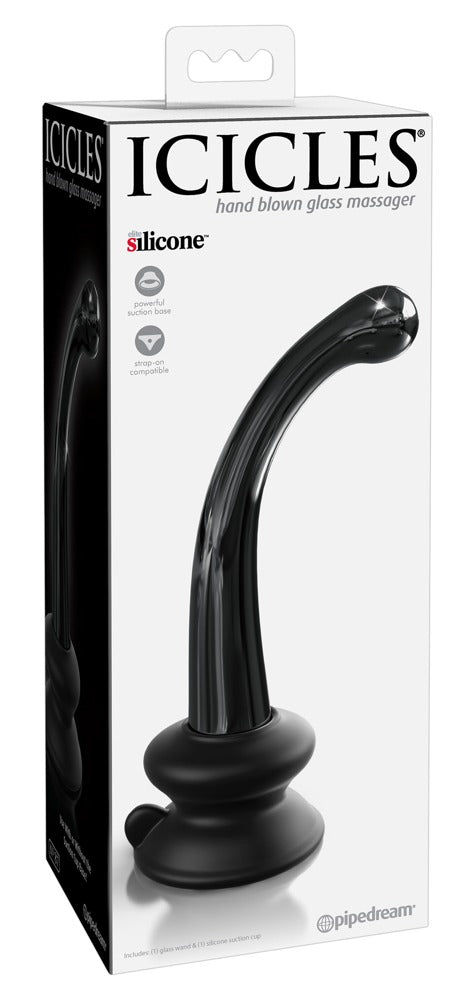 Deze exclusief handgemaakte glazen dildo in een gebogen design met een bocht van 63° is perfect voor gerichte stimulatie van de vaginale G-spot en de anale P-spot. Met zijn (afneembare) zuigvoet kan hij comfortabel en flexibel worden geleid en zelfs handsfree worden gebruikt - en kan hij ook in een strap-on (niet inbegrepen) worden gestoken. De dildo zelf kan in warm of koud water worden getemperd, wat bijzonder opwindende momenten van genot mogelijk maakt. Het glas is absoluut naadloos handgemaakt en wordt gekenmerkt door zijn anti-allergene eigenschappen.