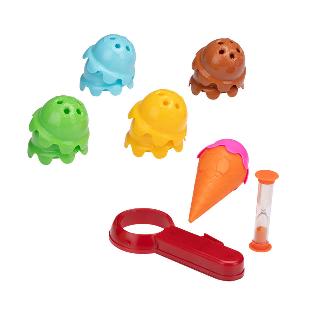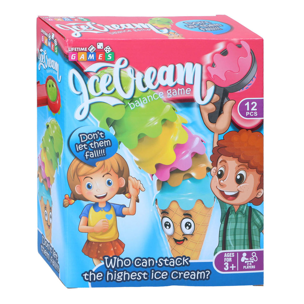 Balansspel waarbij je zoveel mogelijk ijsbolletjes op het hoorntje moet stapelen. Wie stapelt de meeste zonder dat ze vallen? Geschilkt voor 2-4 spelers vanaf 3 jaar. Inhoud: 9 ijsbolletjes, 1 hoorntje, 1 tang en 1 zandloper.