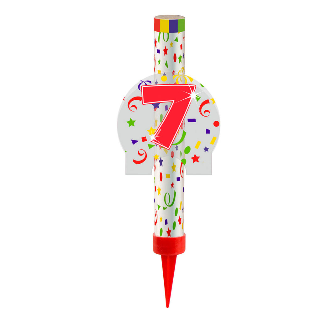 Feest ijsfontein in de vorm van het cijfer 7. Leuk voor op het gebak of een ijstaart. Brandtijd ca. 45 seconden. De ijsfontein is geschikt voor gebruik binnenshuis. Inclusief handig aansteekstokje.