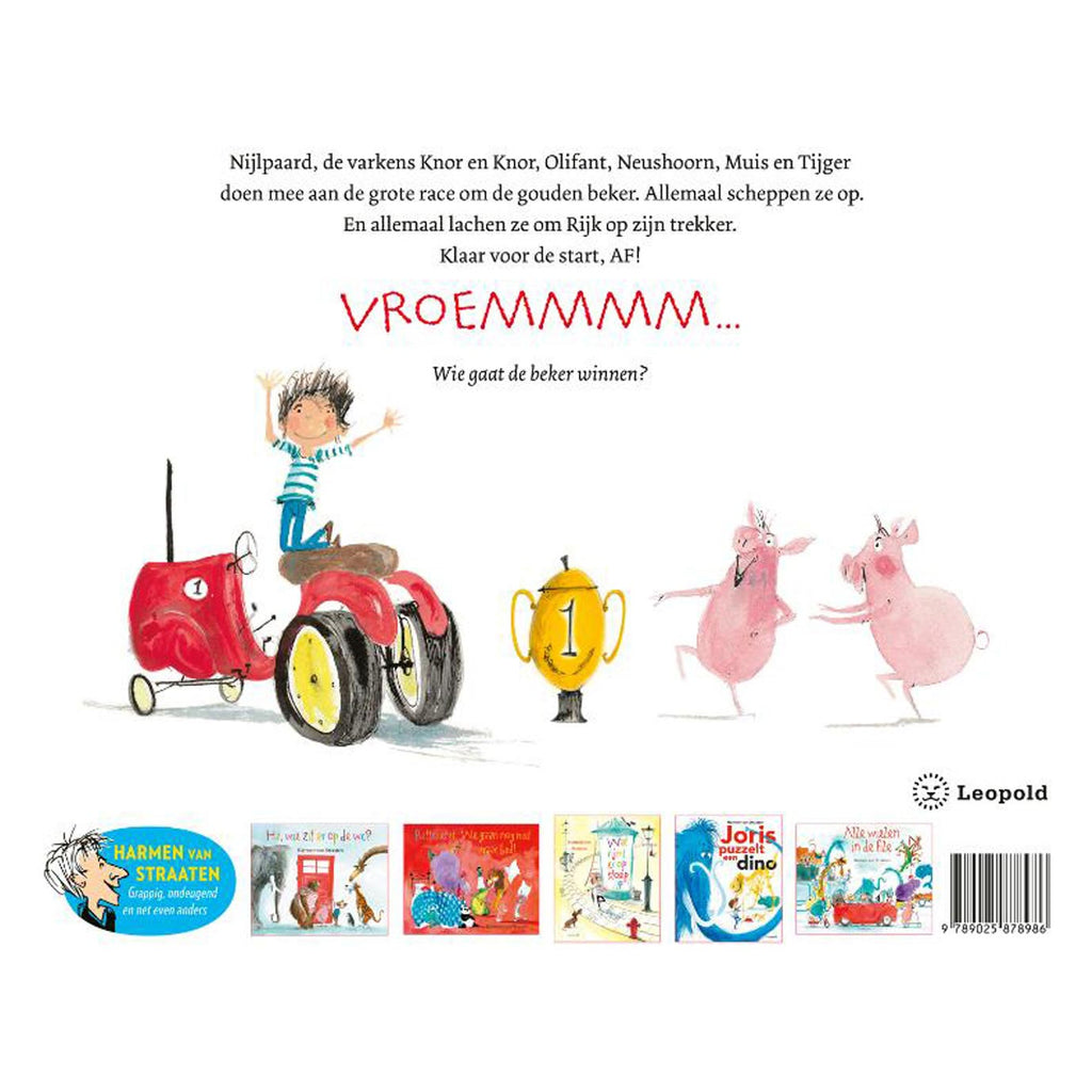Vrolijk prentenboek op rijm van Harmen van Straaten, bekend van Hé, wie zit er op de wc?, Wat rijmt er op stoep?, Retteketet, We gaan nog niet naar bed!, Joris puzzelt een dino en Alle wielen in de file.