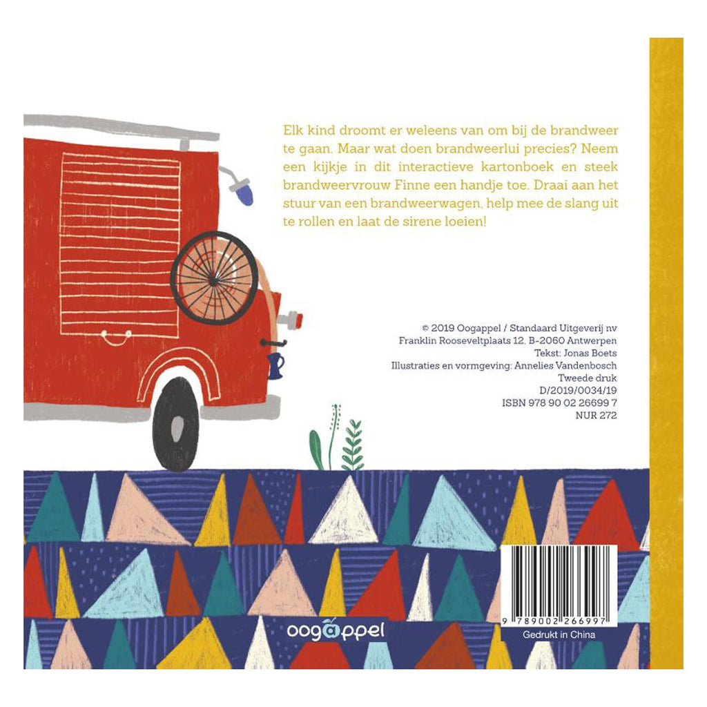 Elk kind droomt er weleens van om bij de brandweer te gaan. Maar wat doen brandweerlui precies? Neem een kijkje in dit interactieve kartonboek en steek brandweervrouw Finne een handje toe. Draai aan het stuur van een brandweerwagen, help mee de slang uit te rollen en laat de sirene loeien!