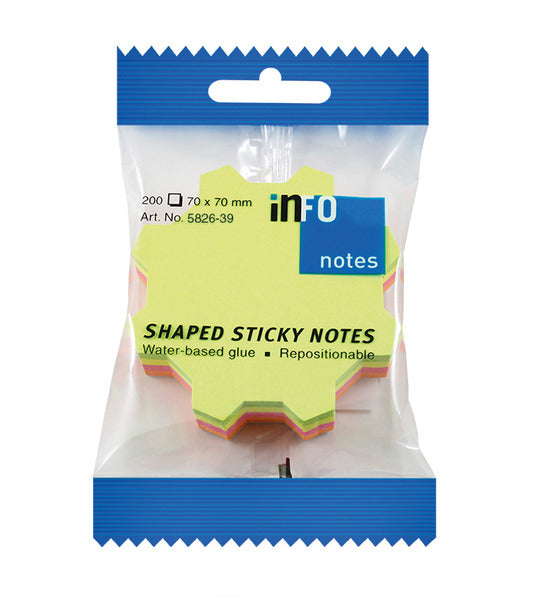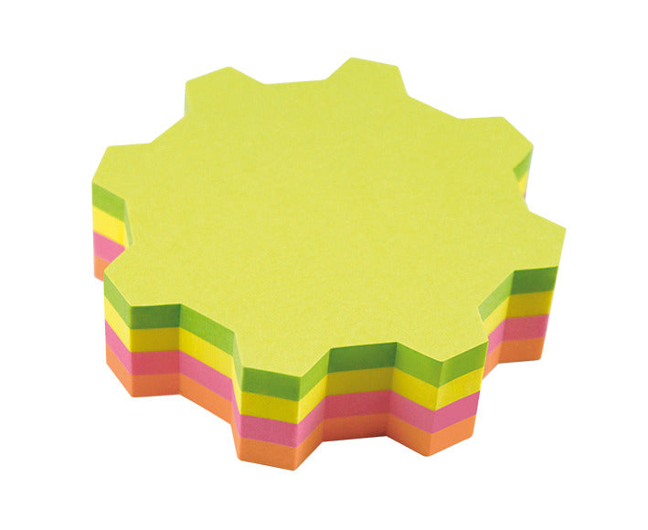 De Shaped Sticky Note geeft je berichten individualiteit en brengt variatie in de dagelijkse communicatie. Er is een vorm voor elke gelegenheid. Formaat 68x68. Aantal 200 vel. 'tandwiel'. 25 mm plakrand en lijm op waterbasis.