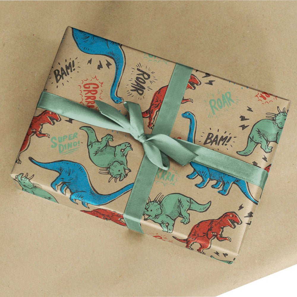 Pak je cadeautjes in met dit cadeaupapier met dinosaurussen! De rol heeft een lengte van 3 meter en is 50 centimeter breed.