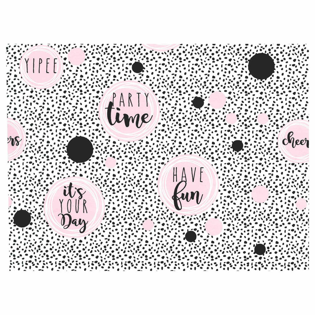Inpakpapier Party Time. De rol heeft een lengte van drie meter en is 50 centimeter breed.