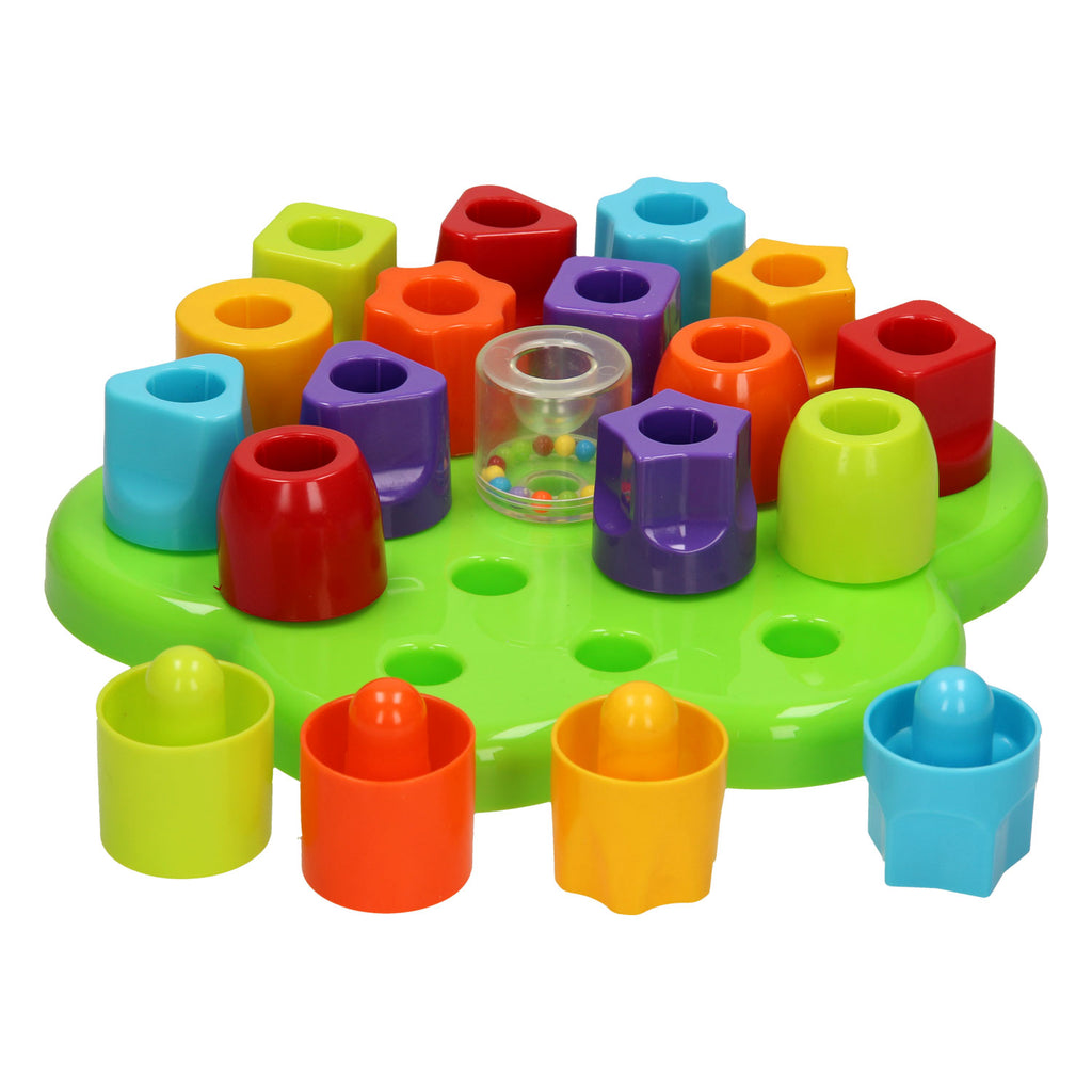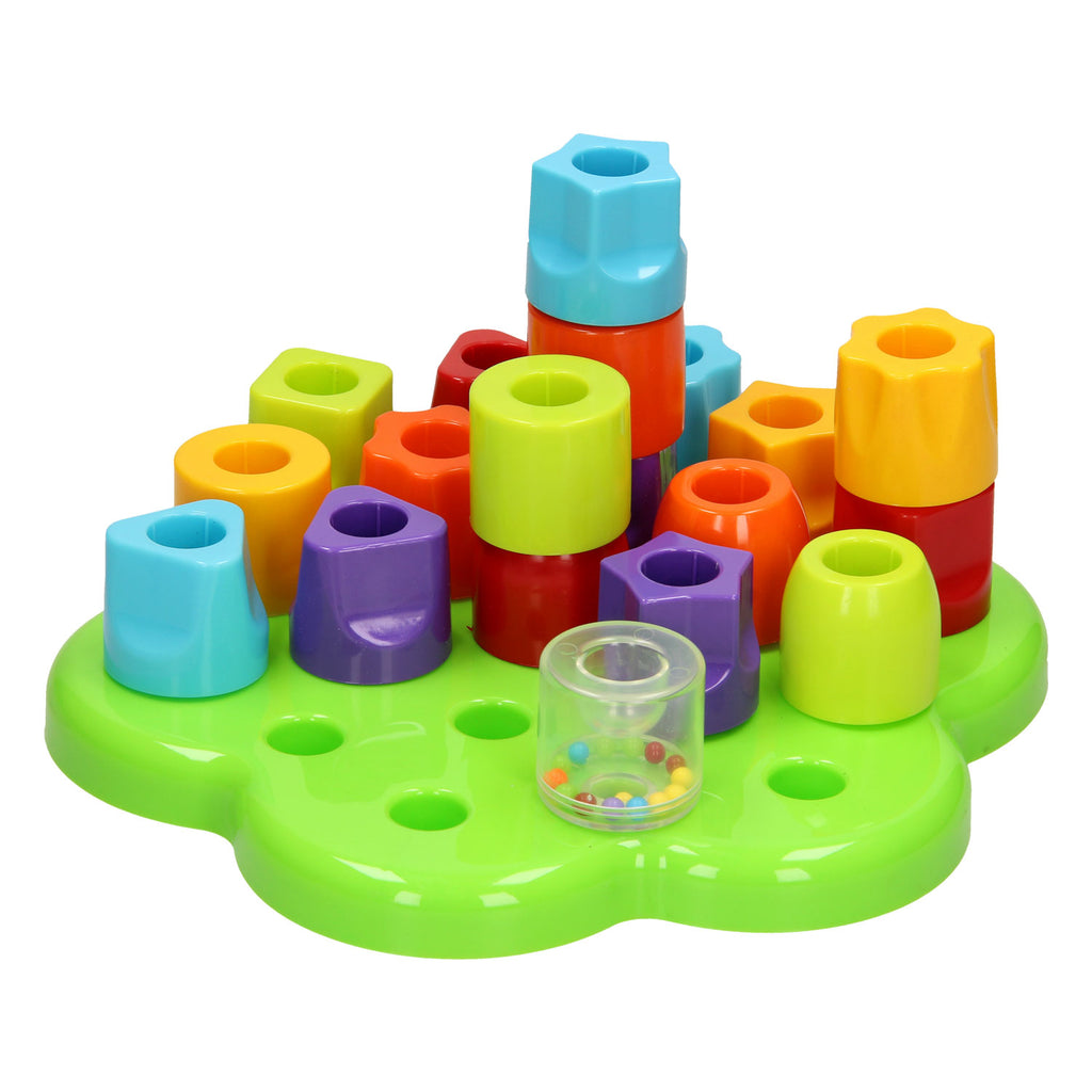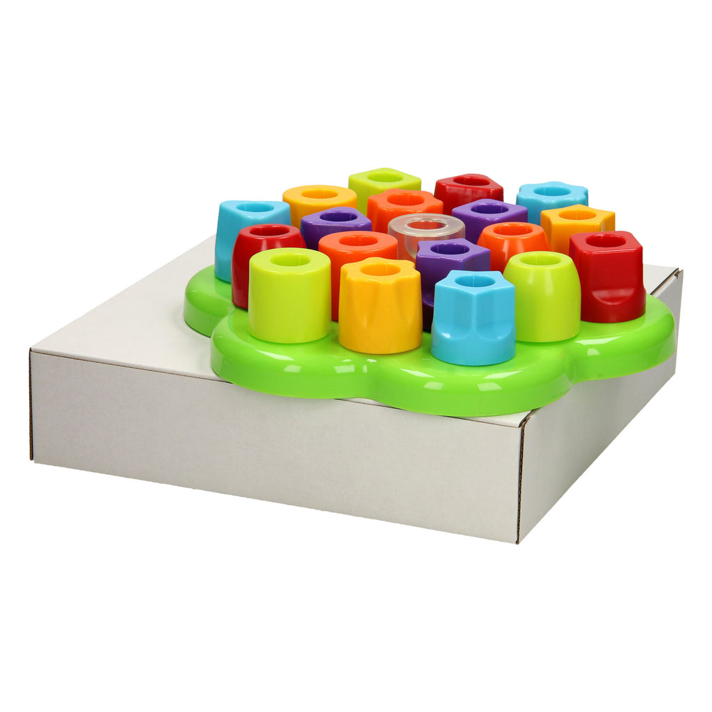 Leer de vormen met dit Insteekbord met Pinnen. De pinnen hebben 6 verschillende kleuren en 6 verschillende vormen. Steek de pinnen in het bord of stapel de pinnen op elkaar gestapeld worden.