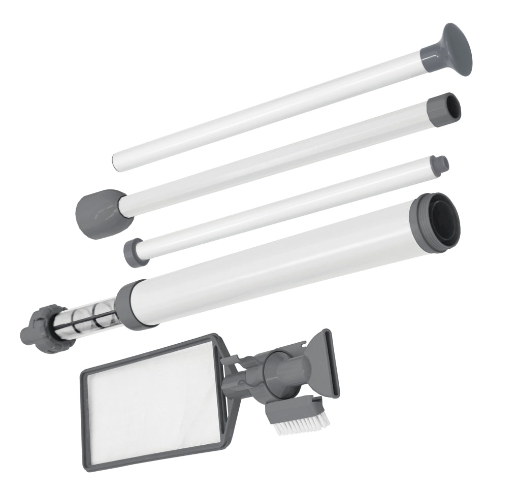Eenvoudige doch zeer handige hand-vacuu?mzuiger voor het reinigen van spa's, whirlpools en kleine kinderbaden. Voorzien van 3 hulpstukken, een brede zuigmond, een zuigmond met borstel en een schepnet, zodat u kunt kiezen op welke manier u wilt reinigen.