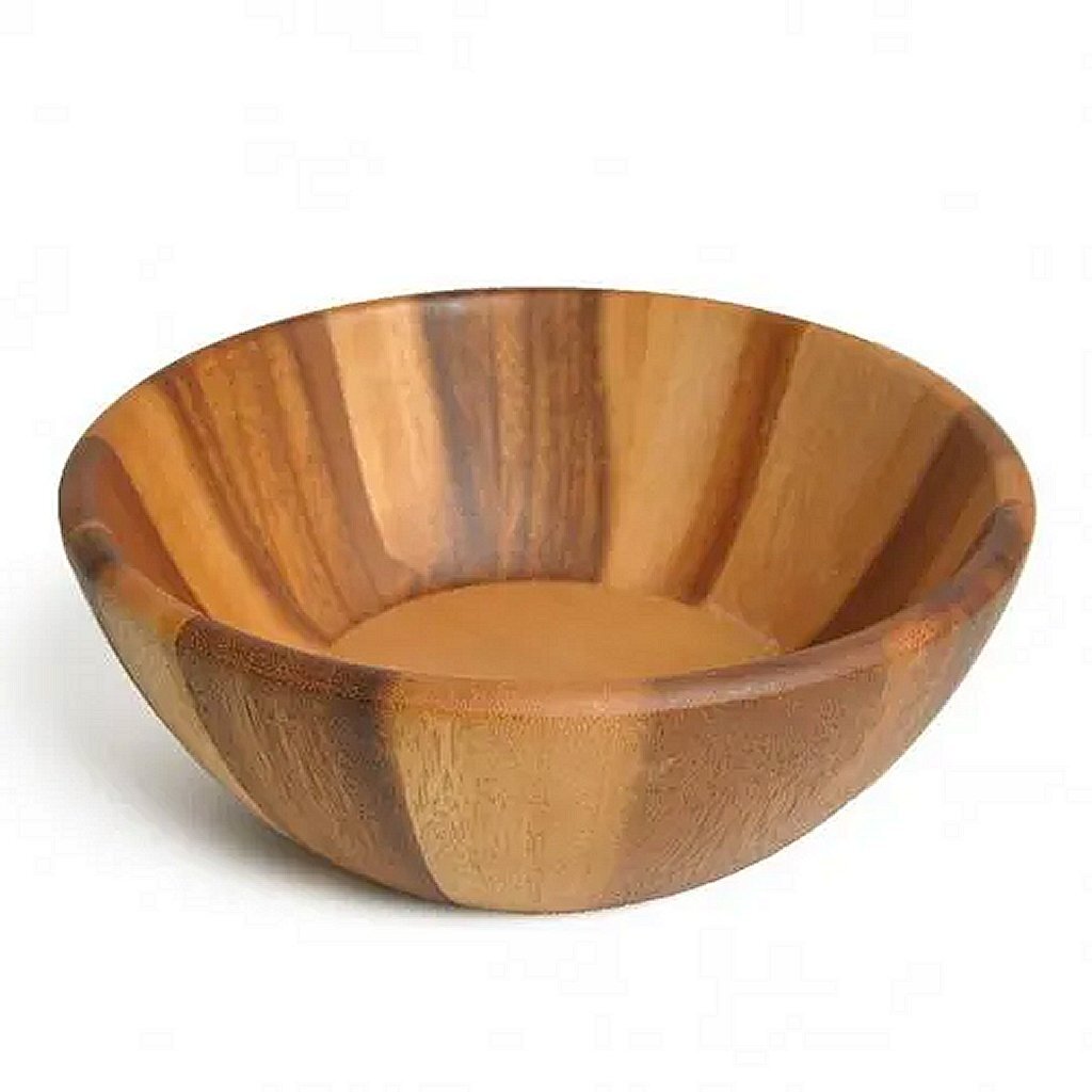 Mooi afgewerkte schaal van acaciahout. Geschikt als saladeschaal, maar ook handig voor bijv. chips of nootjes.Afmeting ca. Ø 20 cm x H 8 cm.