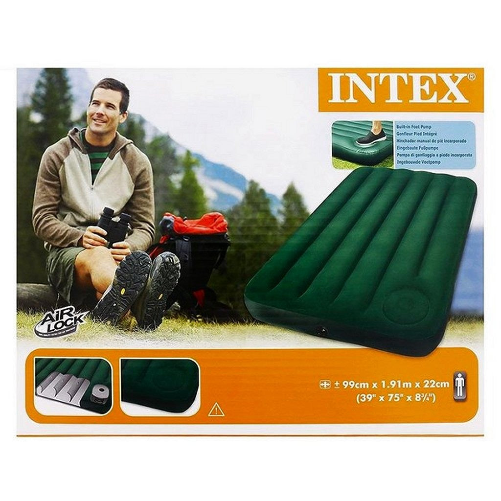 Het Intex Downy Bed is essentieel voor het kamperen in het "wild"! Het waterdichte geflockte oppervlak geeft comfort terwijl de unieke baanconstructie een einde maakt aan bobbelige nachten. De lichtgewicht ingebouwde voetpomp maakt het oppompen gemakkelijk en het gebruik van een losse pomp of netstroom overbodig!