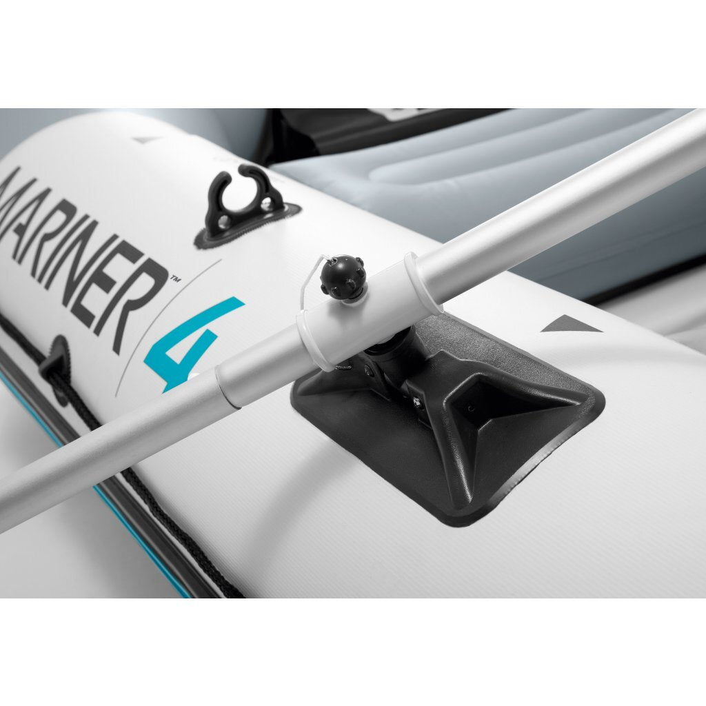 De Intex Mariner 4 set is een zeer stevige opblaasboot en tevens de enige boot met een harde plastic vloer waardoor je bij rustig water in de boot kunt staan. Dit komt door het materiaal (Super-Tough). Door het materiaal geeft deze boot een zeer stevig en veilig gevoel. Aan de onderzijde van de boot zit een opblaasbare kiel die de boot op koers houd. De boot wordt geleverd met aluminium roeispanen, een handpomp, drie opblaasbare zitkussens en een reparatiekit.