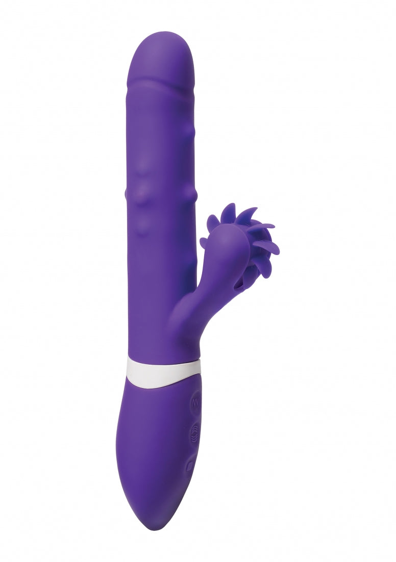 Drie onafhankelijk van elkaar te bedienen motoren bieden eindeloos veel pleziermogelijkheden?gebruik er een, twee, of alle drie in elke combinatie van de 8 schachtvibratiestanden, de stimulerende kralen met 3 snelheden, en het multifunctionele draaiende wiel. Deze luxe premium siliconen vibrator is 100% lichaamsveilig, en laadt gemakkelijk op via het bijgeleverde USB snoer.