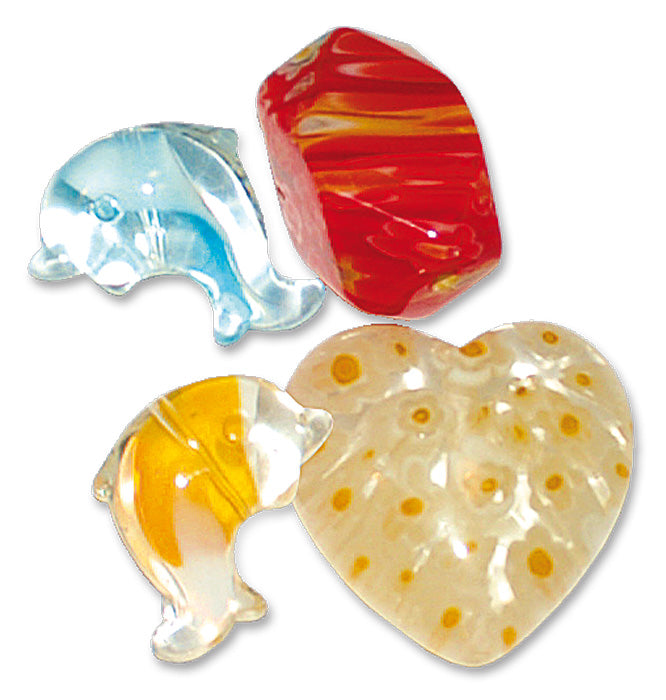 Met ingewikkelde details zijn deze prachtige parels, cilinders, dieren, kruisen en harten gemaakt van glas en keramiek - prachtige, individuele stukken van hoge kwaliteit om uw eigen sieraden te maken, zoals kleine olifantjes, katten of dolfijnen. Laat uw creativiteit de vrije loop, u zult versteld staan van wat er allemaal mogelijk is! Talloze verschillende sluitingen in zilver en goud. Gekleurde oorbelhouders zitten ook in de georganiseerde doos.