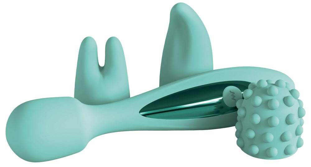 Canna massagestaaf van JimmyJane met een sterk vibrerende massagekop. Inclusief 3 verschillende opzetstukken voor veelzijdige stimulatie. De zijdezachte opzetstukken zijn eenvoudig te bevestigen en snel te vervangen. 7 stille vibratiestanden zorgen voor individueel massageplezier en kunnen handig bediend worden met één druk op de knop op het handvat. De massagestaaf ligt perfect en licht in de hand en is gemakkelijk te leiden.