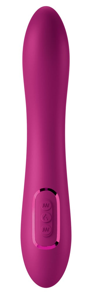 Ergonomisch gevormde Solis Form 6 vibrator van JimmyJane met warmtefunctie voor veelzijdige verwennerij met comfort. er bevinden zich 2 krachtige motoren in de kop en de schacht: de vibraties in de kop zijn bijzonder diep (bass), de vibraties in de schacht passen zich zachtjes aan (treble). Beide kunnen afzonderlijk worden bediend in 10 standen met één druk op de knop. De zacht vibrerende kop kan gebruikt worden voor de vaginale G-zone of anale P-zone, maar ook voor externe genotspunten zoals de clitoris, testikels, enz.
