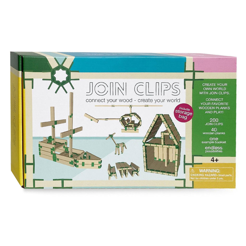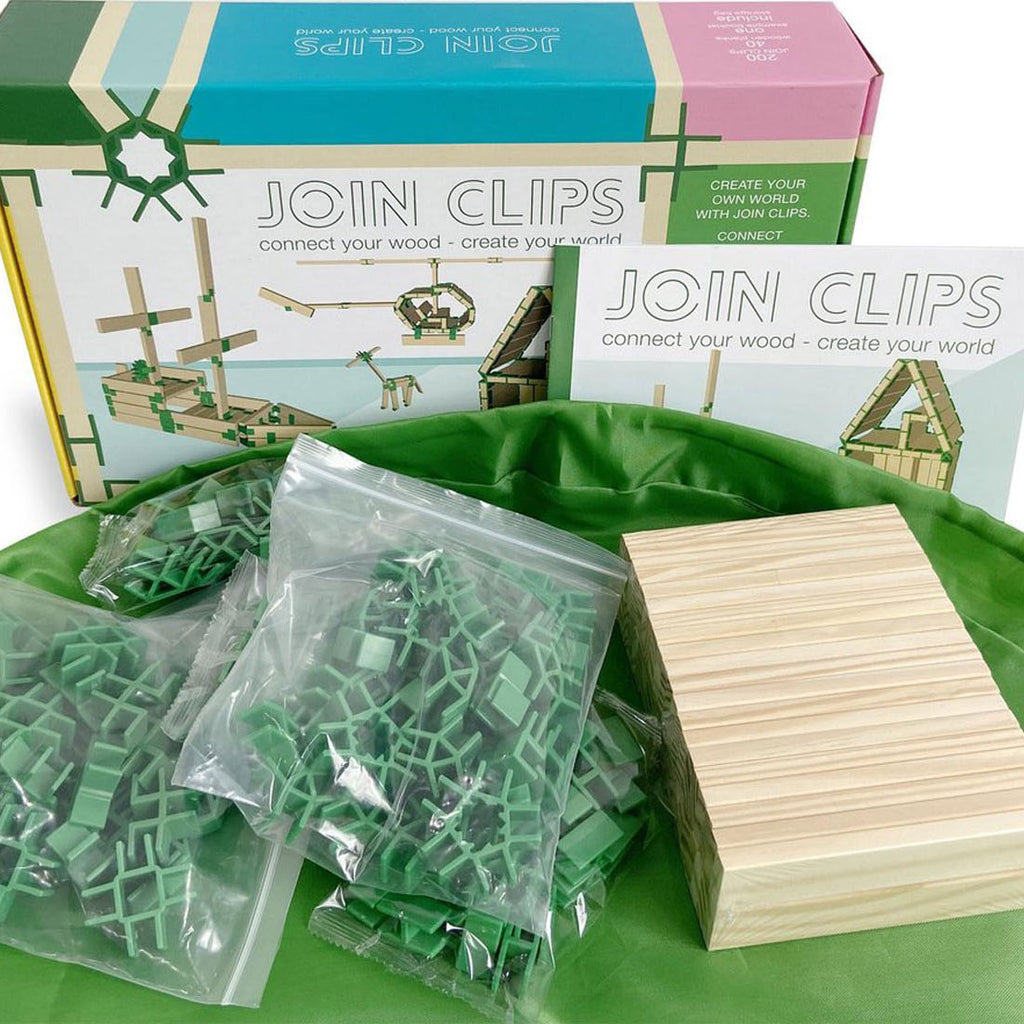 Deze Join Clips thuis editie bevat 200 verbinding clips in diverse uitvoeringen, 40 mooi afgewerkte houten bouwplankjes. Een instructie boekje met 4 bouwvoorbeelden.