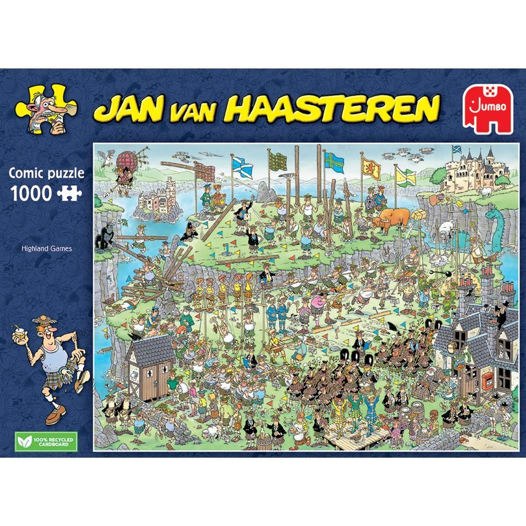 Jan van Haasteren Highland Games Puzzel 1500 Stukjes is een van de nieuwe puzzels van Jan van Haasteren. Tijdens deze Highland Games verloopt niet alles even soepel. Highland Games van Jan van Haasteren is een puzzel met 1500 stukjes voor de echte Jan van Haasteren fans! Zodra je Jan van Haasteren Highland Games met 1500 Stukjes begint te puzzelen stuit je op het ene na het andere hilarische tafereel. Jan van Haasteren heeft ook deze keer weer laten zien dat humor op een prachtige manier kan worden verwerkt in een puzzel.