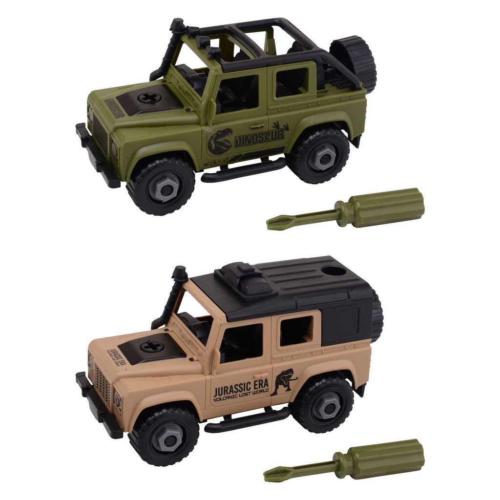 Dino Rescue Team terreinwagen van kunststof. Deze stoere jeep is op missie om dino’s te redden, en jij bent de chauffeur! De auto wordt gelverd met een kunststof schroevendraaier die gebruikt kan worden voor de wielen en motorkap. Afmetingen verpakking: 20 x 10 x 14 centiemter. Geschikt vanaf 3 jaar.