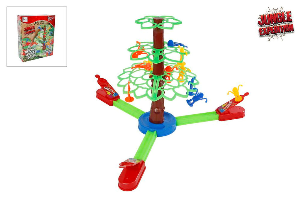 Kunststof lanceerspel waarbij je aapjes de boom in moet schieten. Wie als eerste zijn aapjes in de boom heeft hangen, wint. Geschikt voor 2 tot 3 spelers vanaf 5 jaar oud.