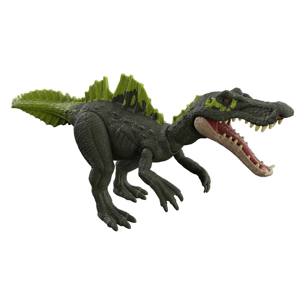 Bereid je voor op spanning en avontuur met deze dinosaurus die is geïnspireerd op Jurassic World Dominion. Dit middelgrote dinosaurusfiguur van Brullende Roofdieren is de vleesetende theropode Ichthyovenator. Deze dino maakt niet alleen een echt BRULLEND geluid, maar gaat ook precies zo bijtend in de aanval als andere dinosaurussen van deze soort! Geluid en beweging activeer je door het heupgedeelte omlaag te duwen. De Ichthyovenator heeft beweegbare gewrichten, een authentieke vormgeving en realistische kleuren en texturen. Zet de dino in stoere houdingen of verzin je eigen avonturen vol actie. Breng deze dinosaurus TOT LEVEN en speel ook digitaal met augmented reality (AR)! Durf te zien hoe ECHT het spel van de dinosaurussen kan worden! Scan de verborgen DNA-code met elk slim apparaat om de AR-ervaringen te ontgrendelen in de gratis Jurassic World Facts app. Geweldig voor fans van dinosaurussen en actiespellen; geschikt voor 4 jaar en ouder. Slim apparaat niet inbegrepen. Afwijkende kleuren, afmetingen en versieringen mogelijk.