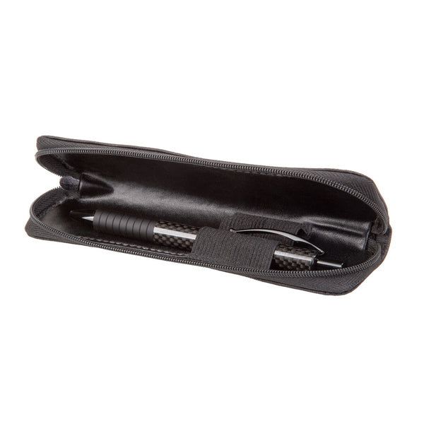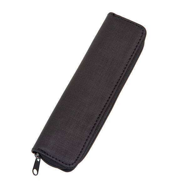 Zwart pennenetui van Alassio van polyester en katoen. Met 2 handige lussen zodat de pennen elkaar niet zullen beschadigen. Kleur zwart, materiaal Polyester / Cotton, afmetingen ca. 17 x 5 x 2 cm.