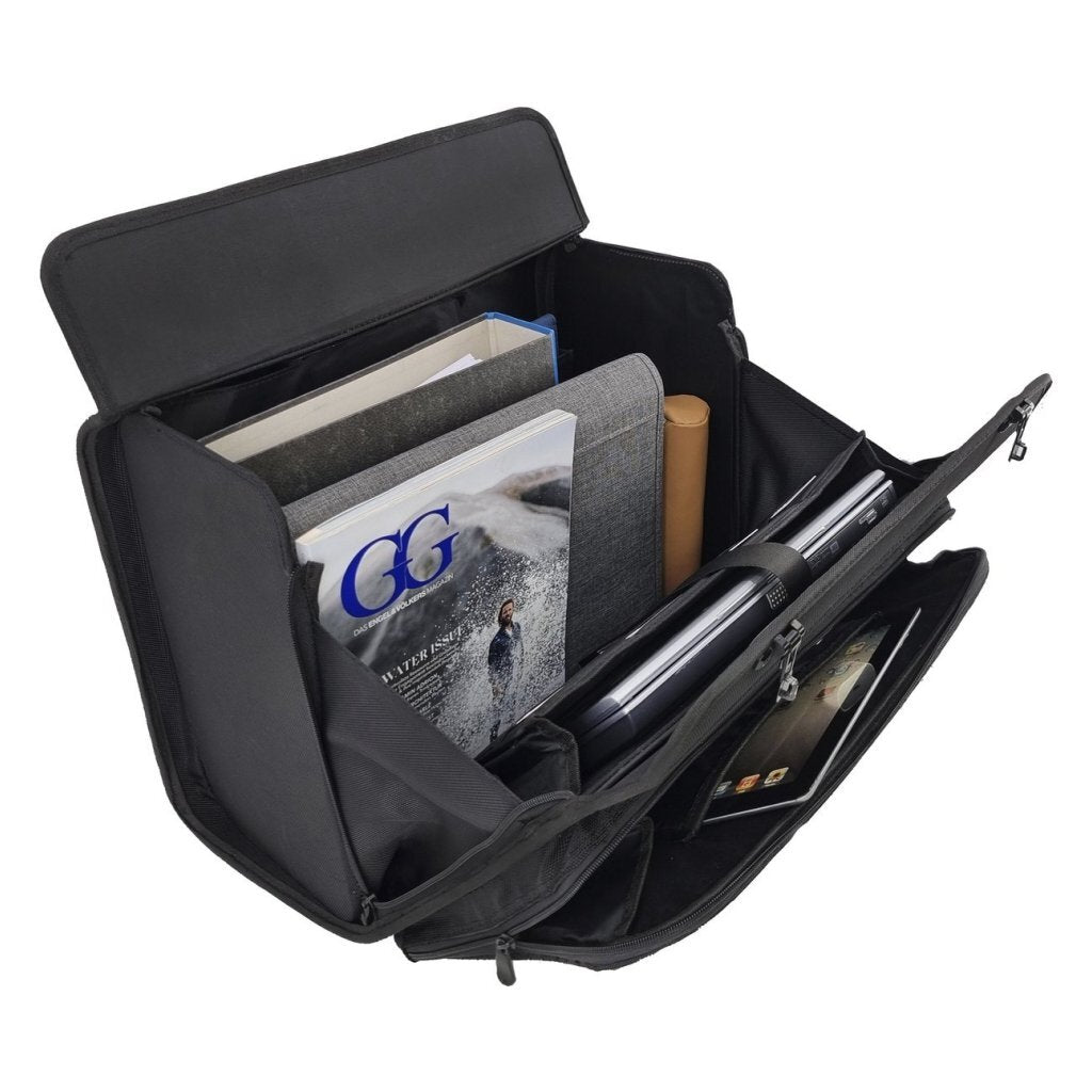 - Voorzien van een afsluitbaar hoofdvak met gevoerd laptopvak en een extra A4 inschuifvak dat kan worden uitgebreid met twee zijritsen