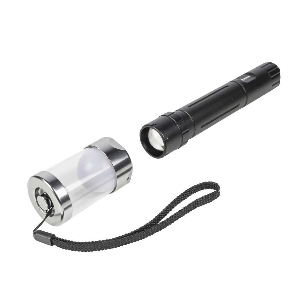 Met deze König LED-zaklamp heeft u een robuuste, waterbestendige lichtbron in handen die perfect geschikt is voor intensief gebruik. Bevestig de diffuser op de lamp en hang hem op aan het koord en u heeft een kampeerlicht. De LED-zaklamp werkt op batterijen. Hierdoor is het 100% veilig om de lamp in een tent op te hangen.